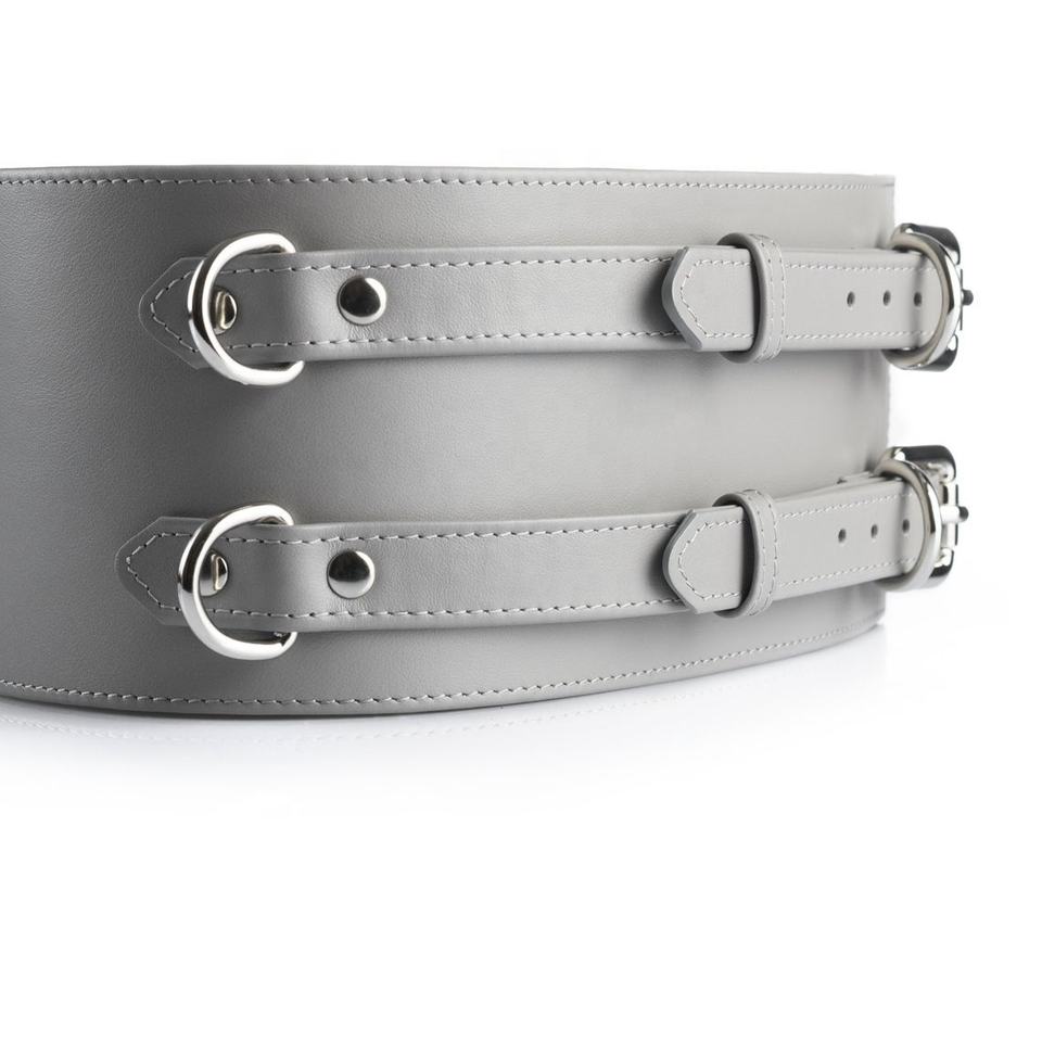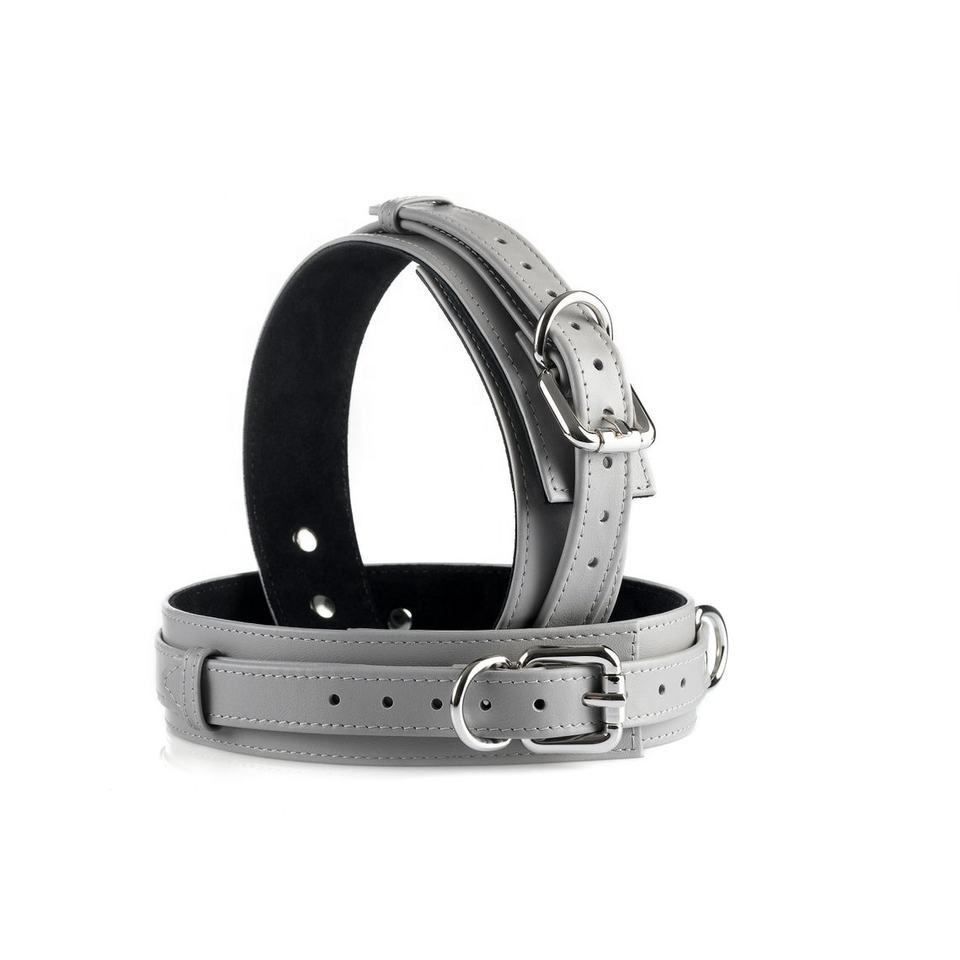 ชุดหนังสีเทาทาสสีชมพู BDSM เกียร์ผู้หญิงกุญแจมือคอและสายจูงจม TFY-0014