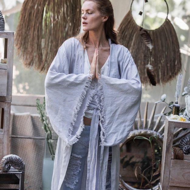 เสื้อคลุมกิโมโนผ้าลินินสำหรับผู้หญิง