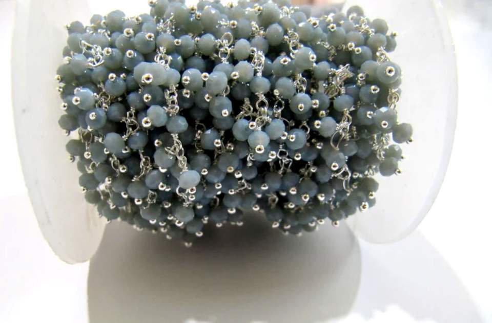 สร้อยลูกปัดพลอยมูนสโตนแบบห้อยทำจากหินควอทซ์สีเทาโซ่ร้อยลูกปัดขนาด3-4มม.
