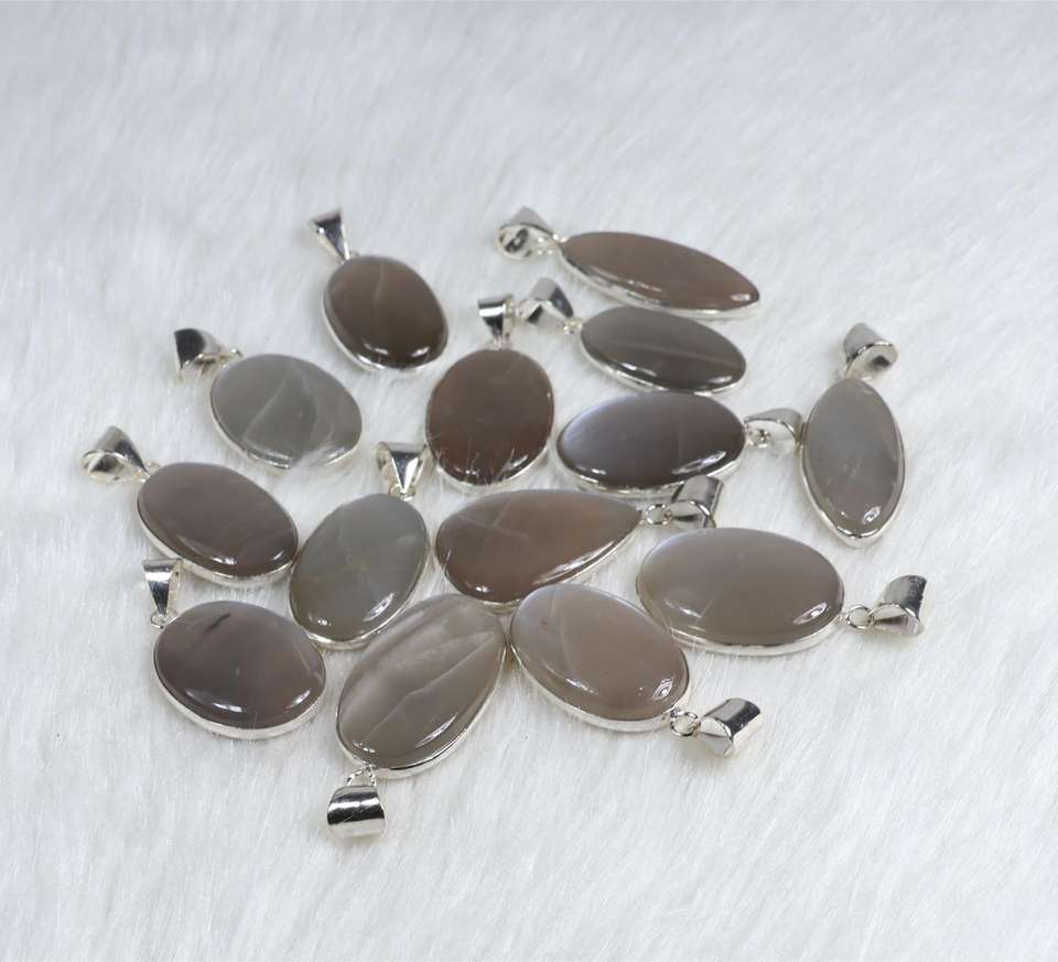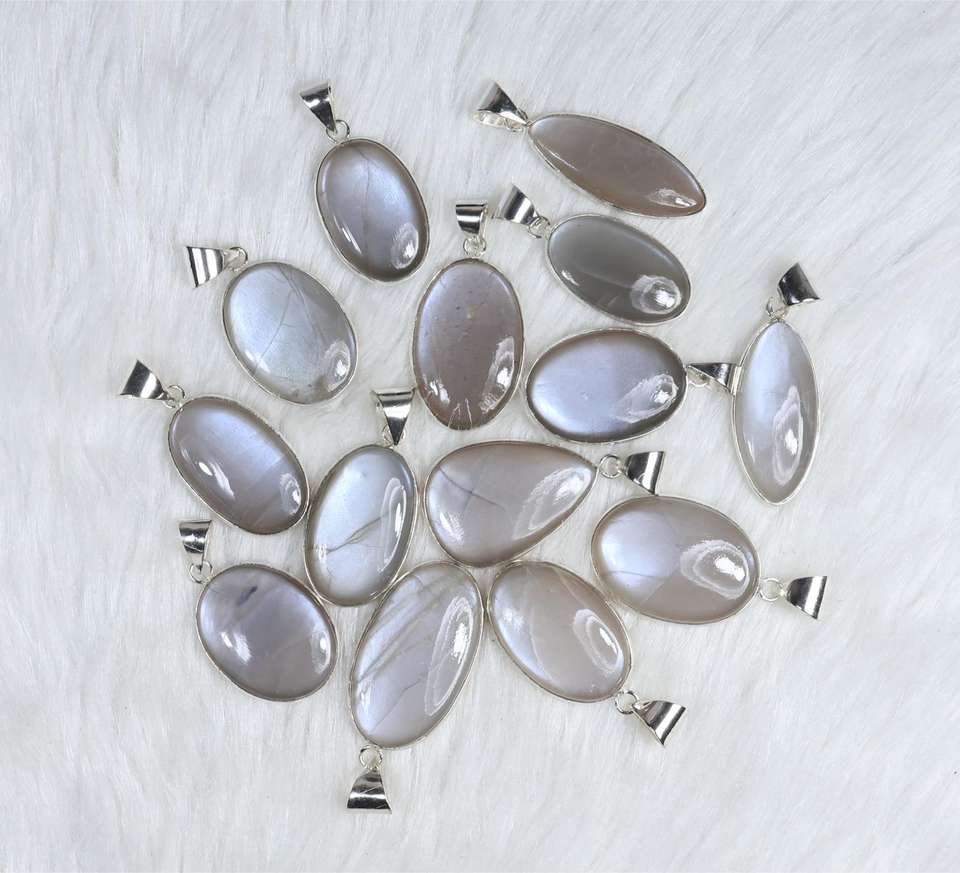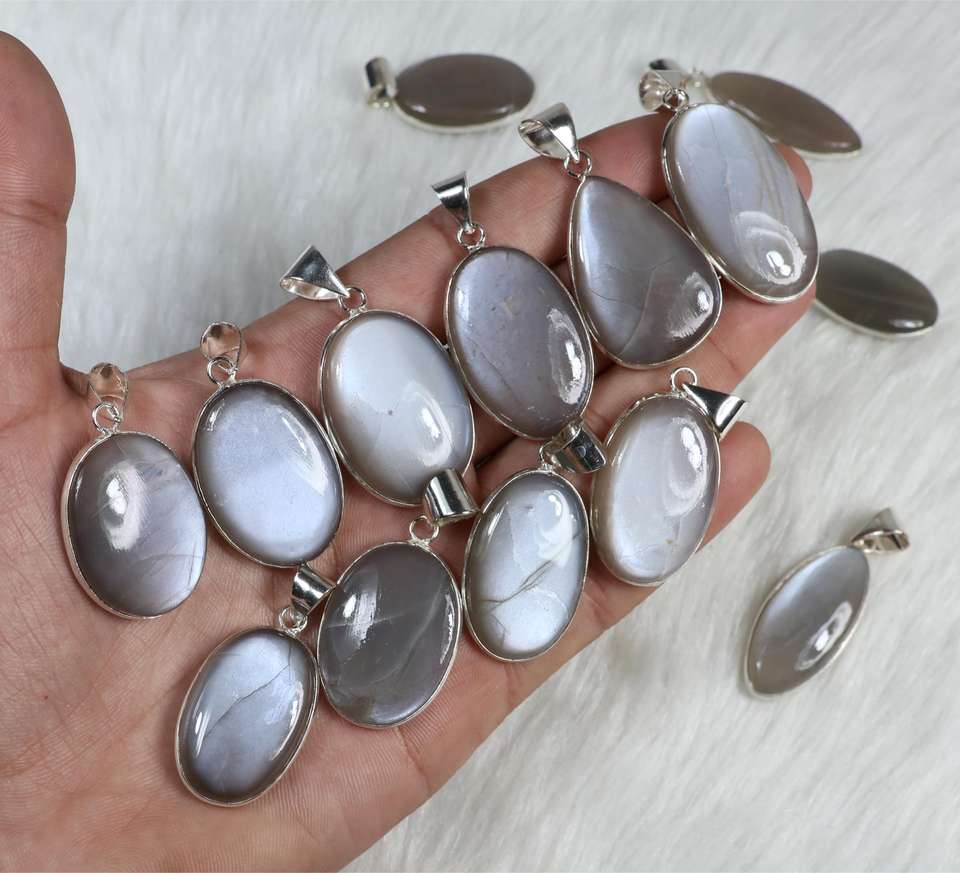 จี้มูนสโตนสีเทาห้อยคอจี้เงินสร้อยคอคริสตัลมูนสโตนฉูดฉาดจี้พลอยมูนสโตนขายส่ง