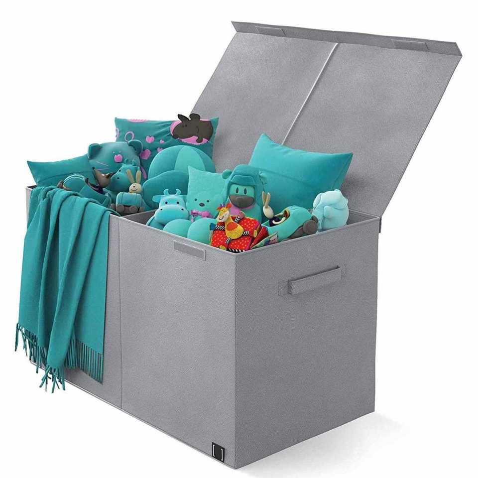 กล่องเก็บของเล่นผ้าสปันบอนด์สีเทา แข็งแรง ทันสมัย คุณภาพดี สามารถวางซ้อนกันได้ ใช้เก็บของเล่นและเสื้อผ้า