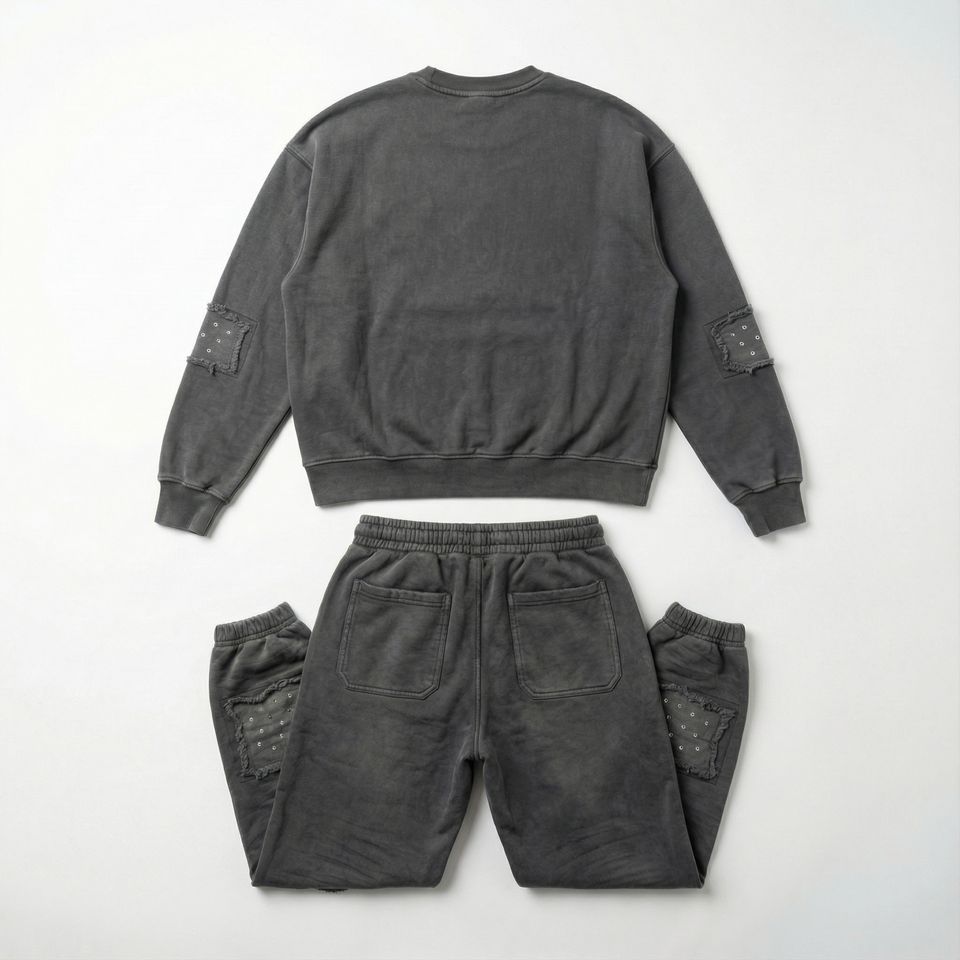 ชุดแทรคสูทไนลอนสีเทาสำหรับผู้ชาย ปักลายทอง กระเป๋าหน้าเสื้อแบบครอป กางเกงคาร์โก้ ชุดสตรีทแวร์ Y2K สไตล์แทคติคอลยูทิลิตี้ ล้างสีแบบแอซิดวอช