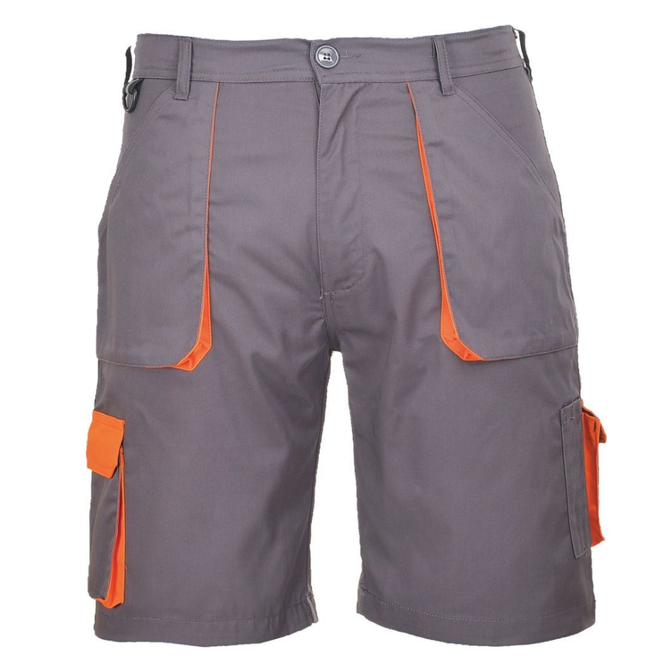 กางเกงขาสั้นผ้าระบายความร้อนแบบสะท้อนแสงระบายอากาศได้ดีสีเทาสีส้มมีหลายกระเป๋าทนทานสำหรับงานอุตสาหกรรม
