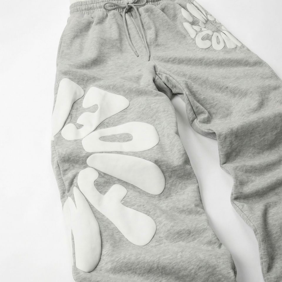 กางเกงวอร์มพิมพ์ลายสีเทา | กางเกงจ็อกเกอร์สตรีทแวร์ไซส์ใหญ่ | กางเกงวอร์มโลโก้ใหญ่ | ผู้ผลิต OEM ตามสั่ง