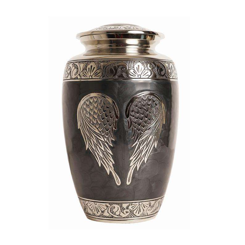 เถ้ากระดูกเหล็กสำหรับผู้ใหญ่ที่มีปีกสีเงินเทาเก็บขี้เถ้าศพสไตล์อเมริกัน/ยุโรป
