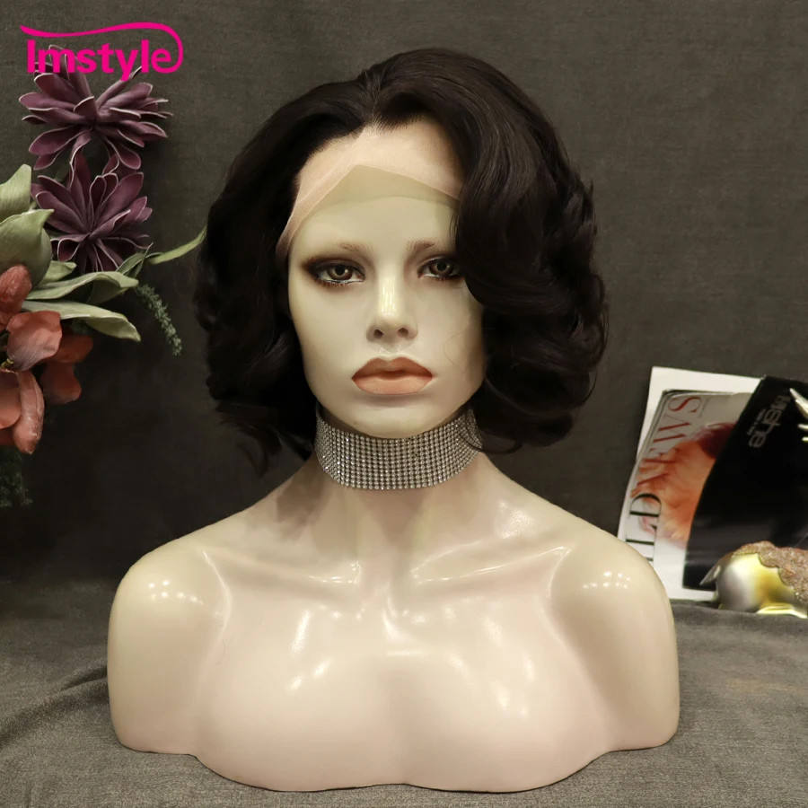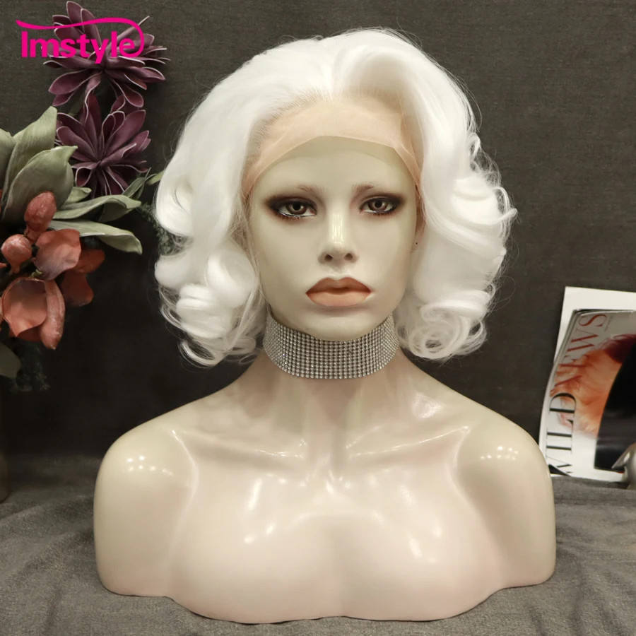 วิกผมสังเคราะห์สีเทาลูกไม้ด้านหน้า