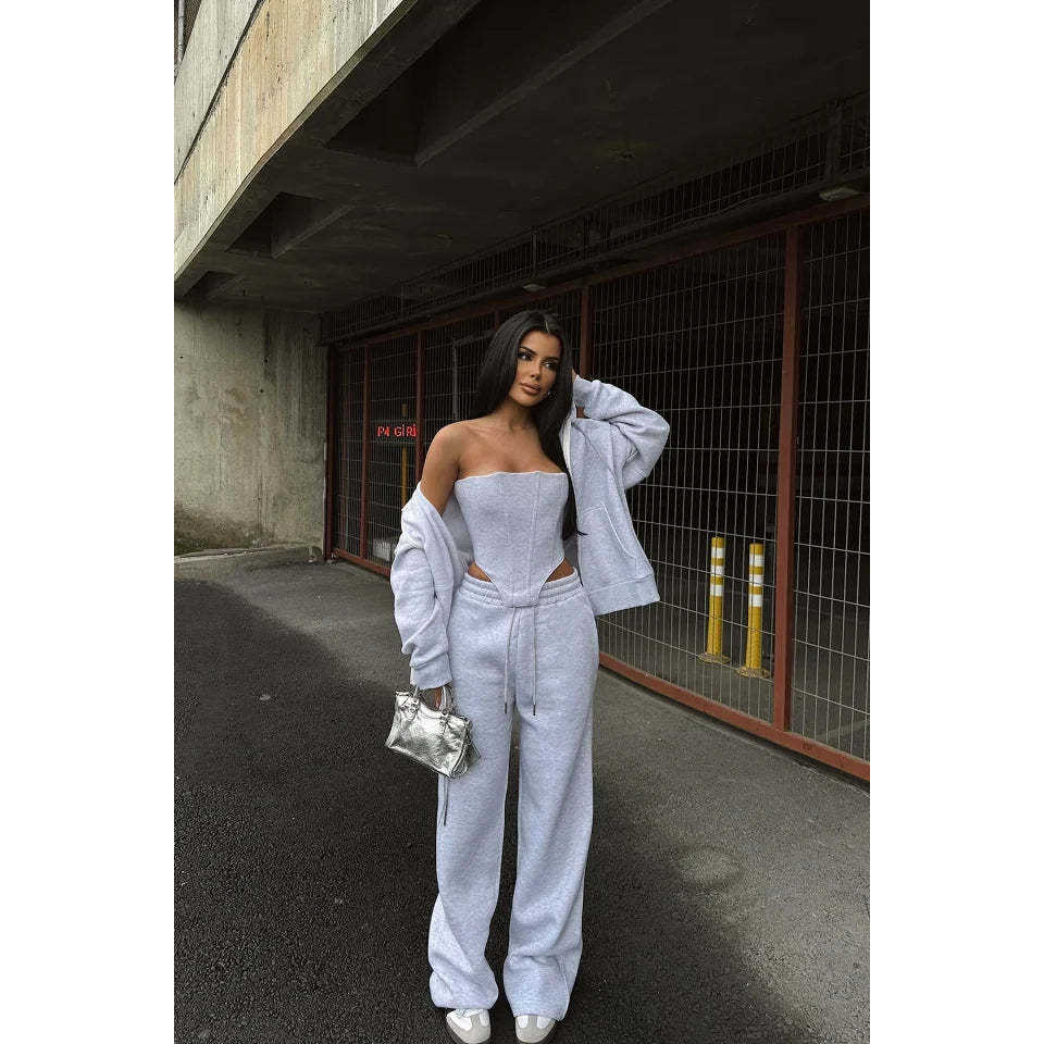 ชุดวอร์มสามชิ้นสีเทา