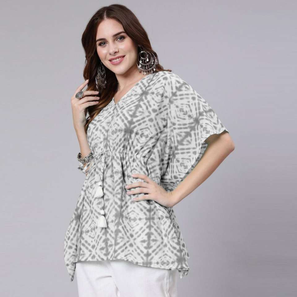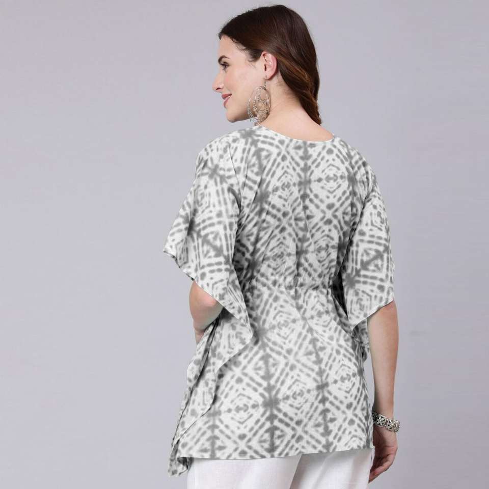 Grey Tie Dye Print Cotton Kaftan Dress Elegant Casual Style Floor-Length ODM Supply Translucent for Work Club Day (SHKUP1209)