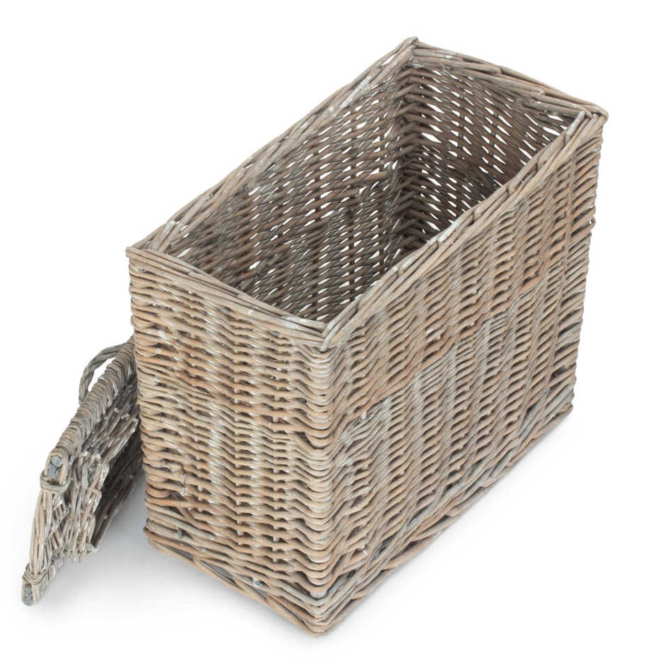 ตะกร้าหวายทรงสี่เหลี่ยมสีเทาสำหรับวางฝาชักโครกแบบมีหูหิ้วสีแดง