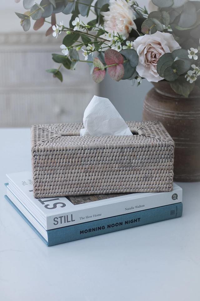 กล่องทิชชู่หวายฟอกสีเทาขนาด: L10,2 x W6 x H3นิ้ว