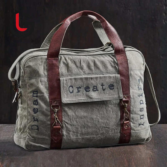 Grey Waxed Cotton Canvas Hand Carry Outdoor Travel Bag Fashionable Genuine Leather Trim Light Weight Durable Water Resistant