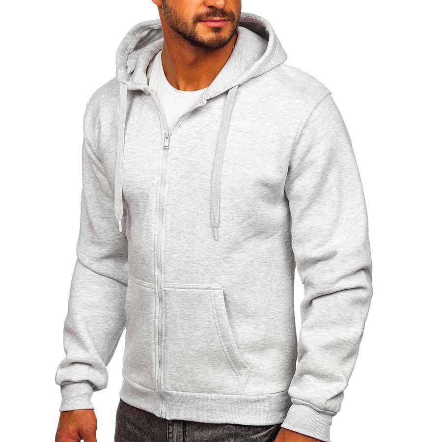 เสื้อฮู้ดมีซิปสำหรับผู้ชายซิปรูดซิปแบบกำหนดเองสีขาวสีเทา