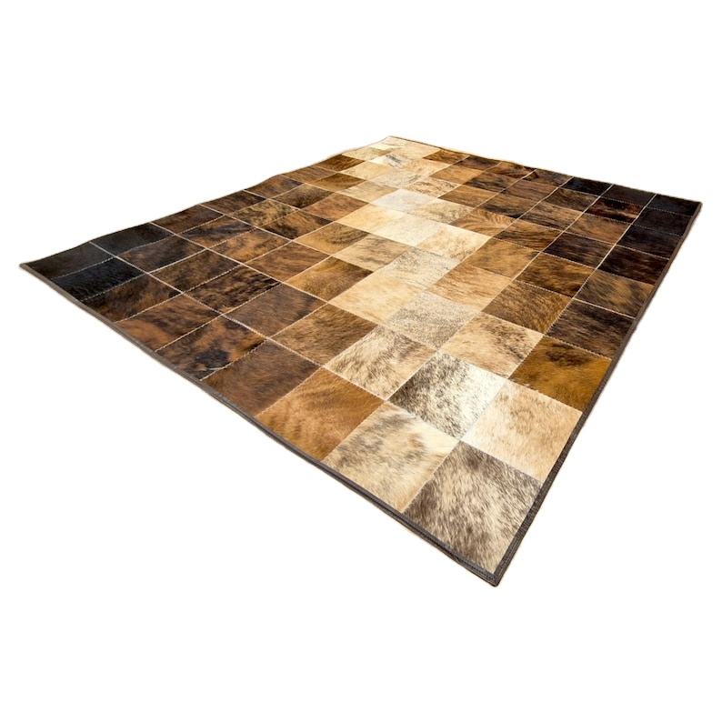 Grey and Black Cowhide Patchwork Rugs Premium Handmade Carpets with Cotton Lining Made in India