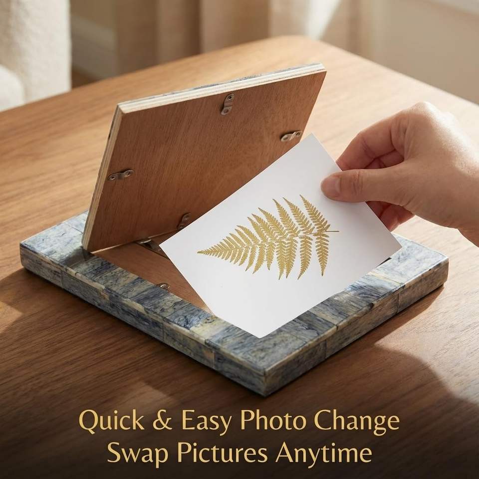 กรอบรูปสีเทาและสีทองพร้อมขาตั้งสำหรับวางบนโต๊ะ ชั้นวางของ หิ้ง ตกแต่งบ้าน และเป็นของขวัญ