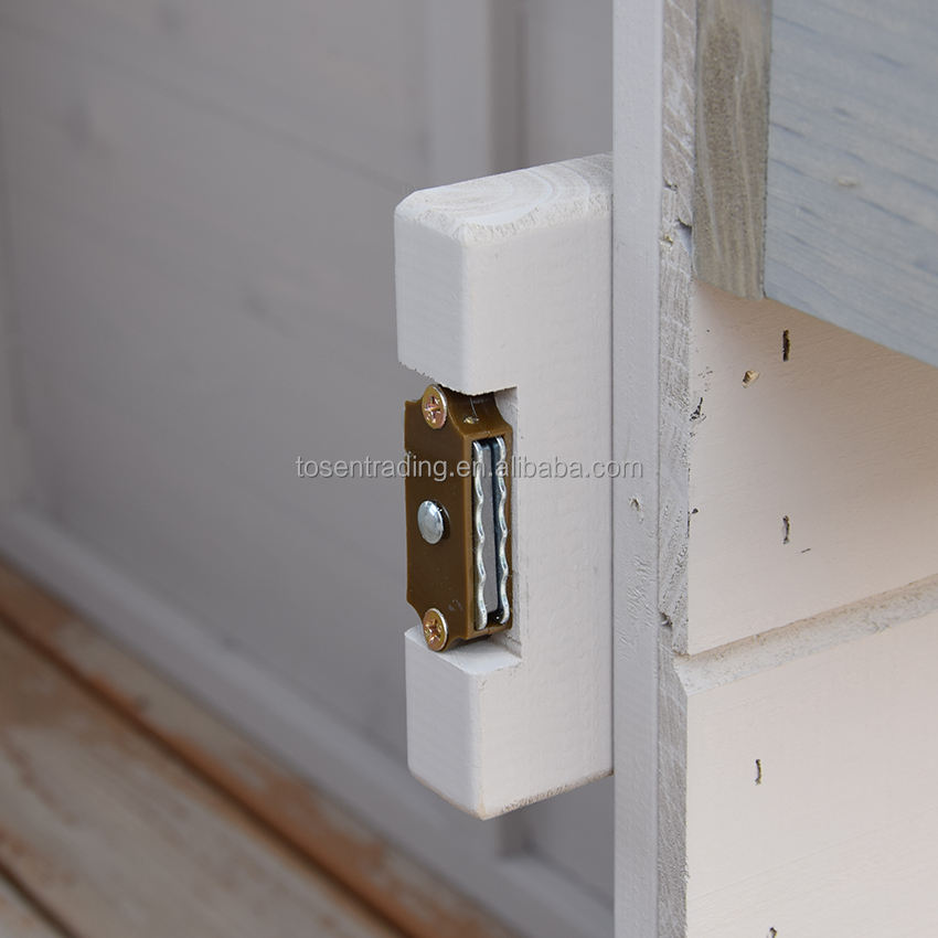 บ้านไม้หลังคาสีเทาสำหรับเด็กเล่นกลางแจ้งในสวน