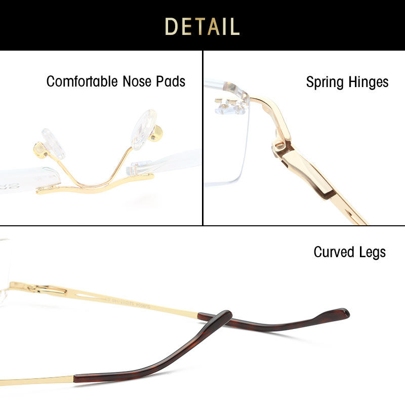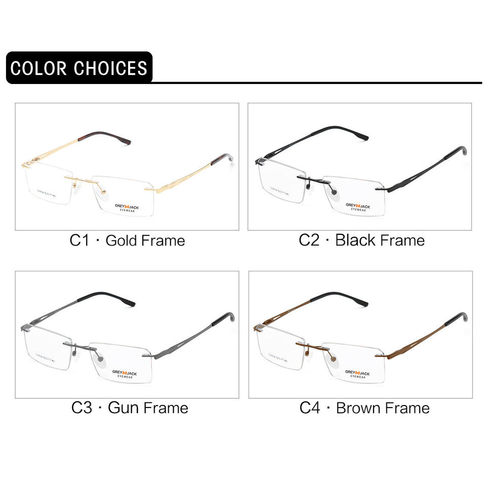 แว่นตาออพติคอลทรงสี่เหลี่ยมไร้กรอบโลหะสีเทาดำสำหรับผู้ชาย รุ่น SF9004 เลนส์แบบ Plano
