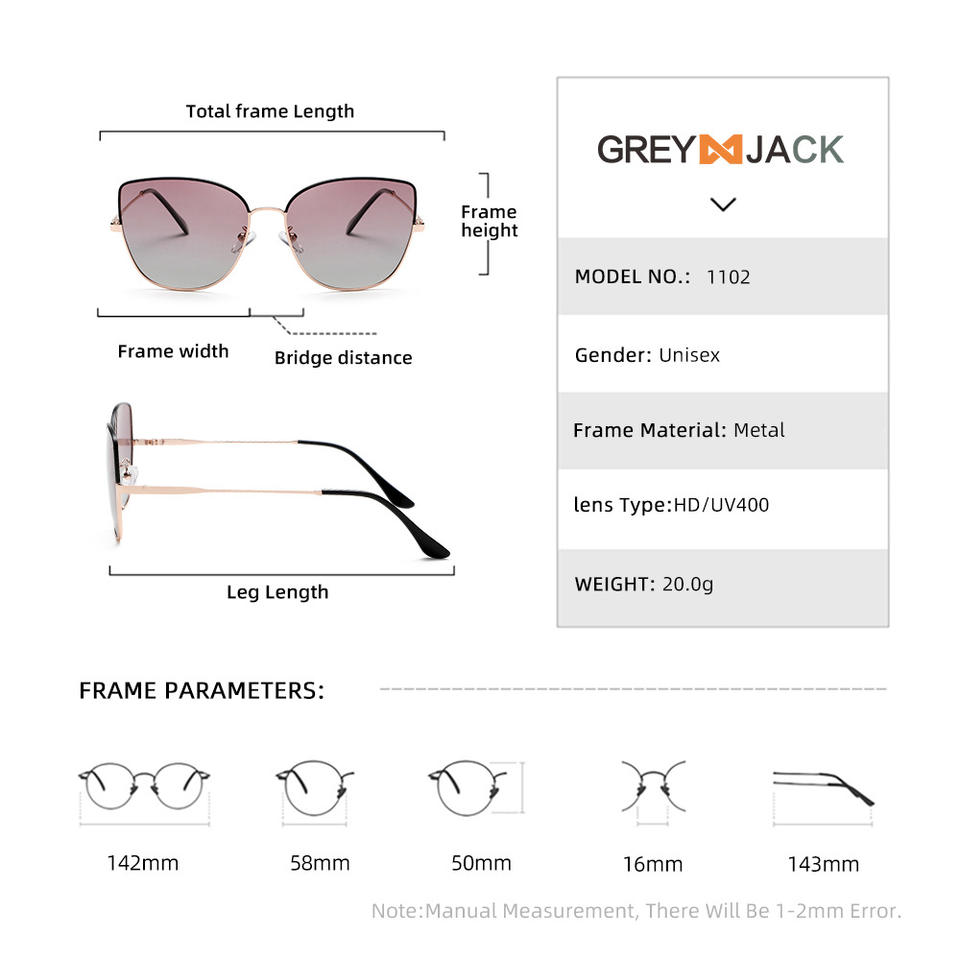 เกรย์แจ็ค แคทอายแว่นกันแดดผู้หญิงกรอบโลหะทอง UV400 แฟชั่นกันแดดสำหรับออกนอกบ้านปาร์ตี้