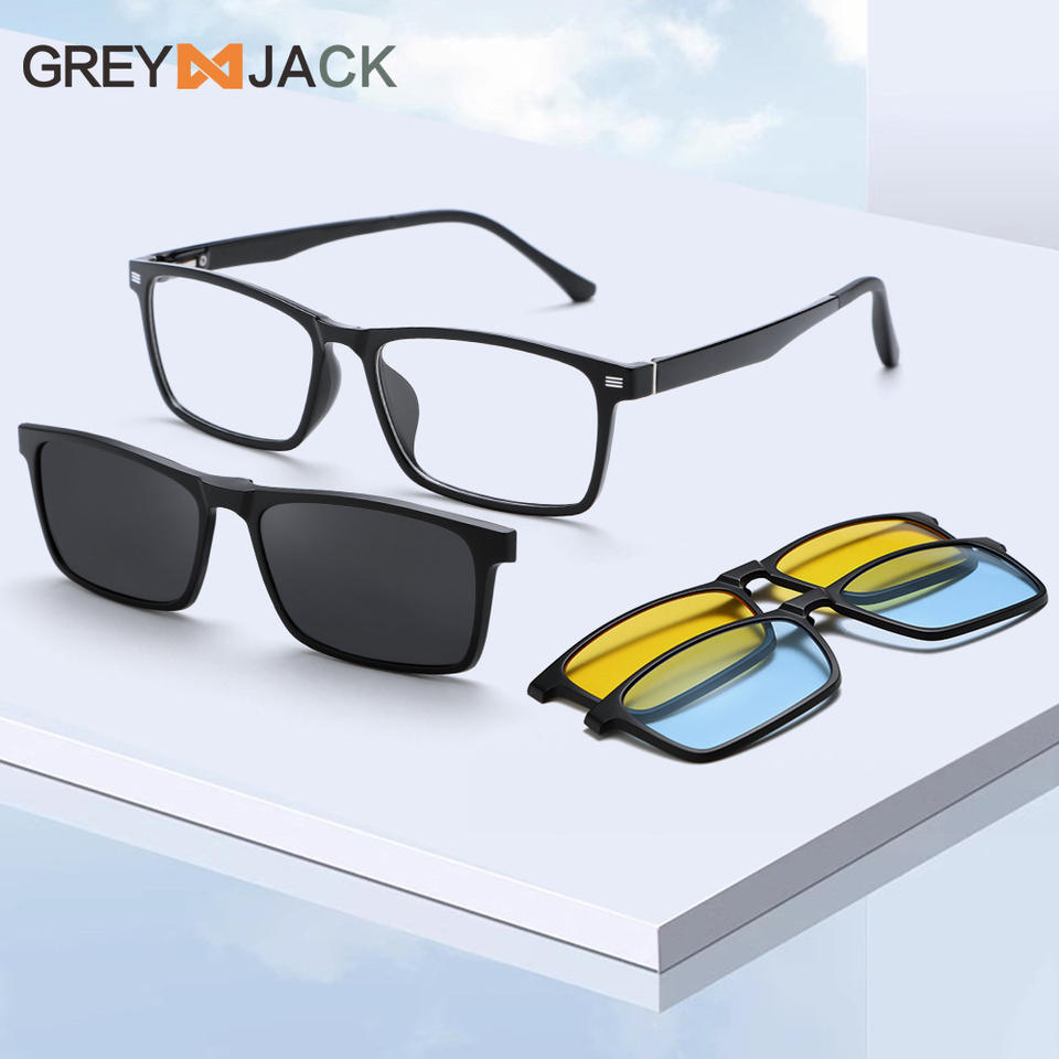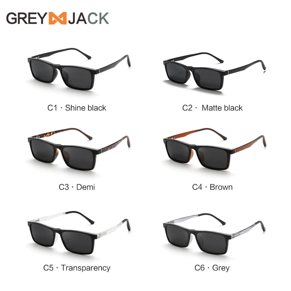 เกรย์แจ็คแว่นกันแดดแม่เหล็กกรอบสีดำ Tr90 เลนส์ยูวี 400 แฟชั่นสำหรับผู้ชายป้องกันแสงแดดขับรถเดินทางน้ำหนักเบา