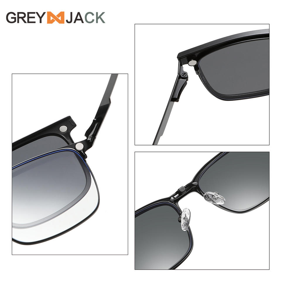 เกรย์แจ็คแว่นกันแดดแม่เหล็กกรอบสแตนเลสเลนส์มองกลางคืนแบบโพลาไรซ์สำหรับผู้ชายแว่นตาธุรกิจ