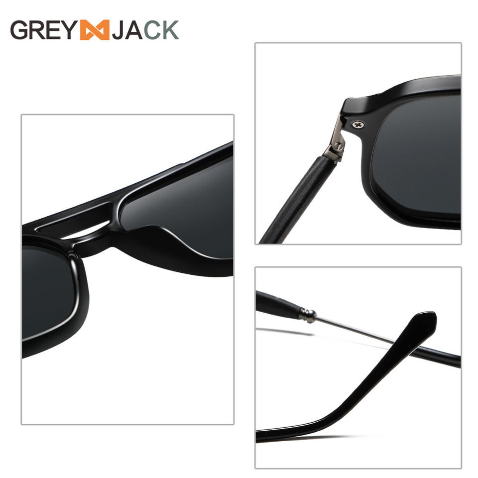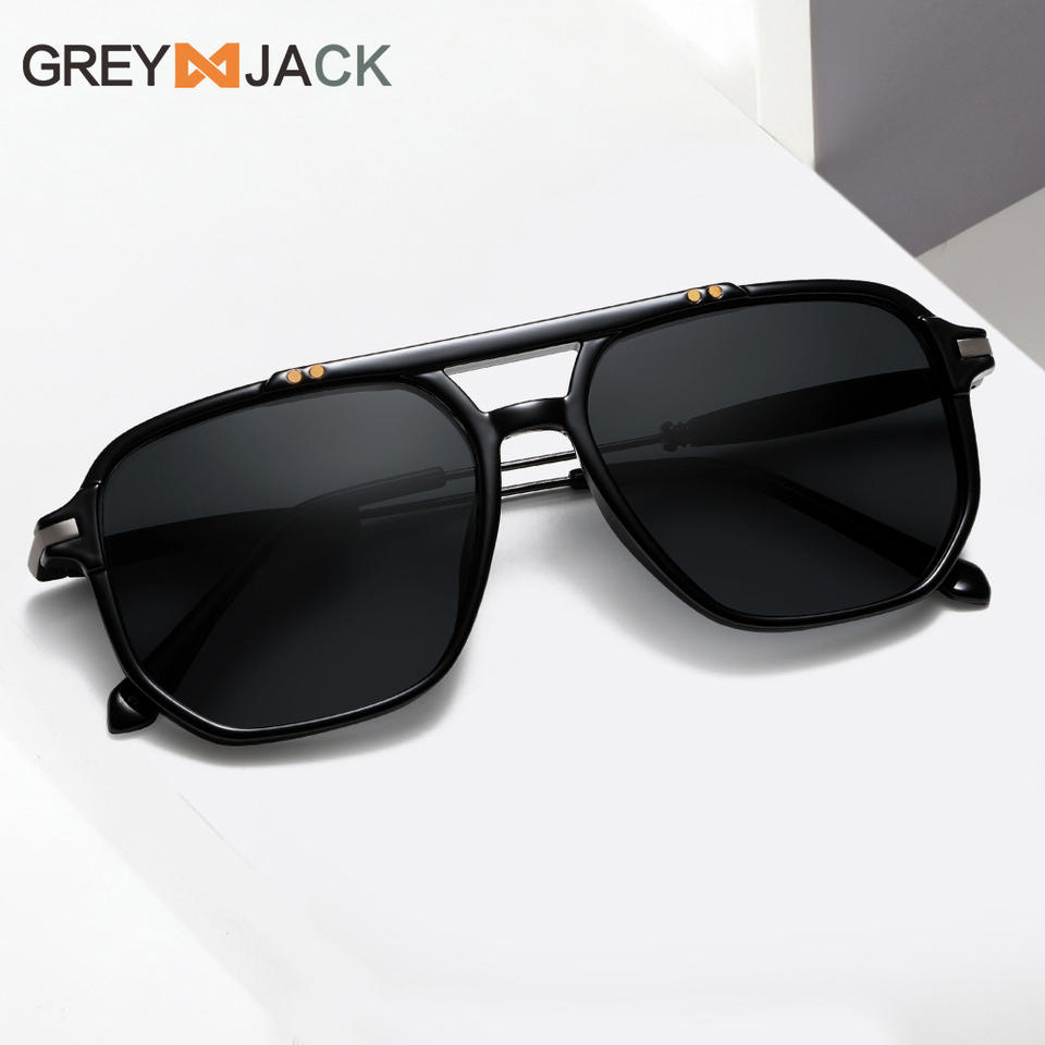 แว่นกันแดดโพลาไรซ์สำหรับผู้ชายเกรย์แจ็คกรอบโลหะ TR สีดำ UV400 การมองเห็นได้ในเวลากลางคืนขับรถสไตล์สปอร์ตกรอบขนาดใหญ่