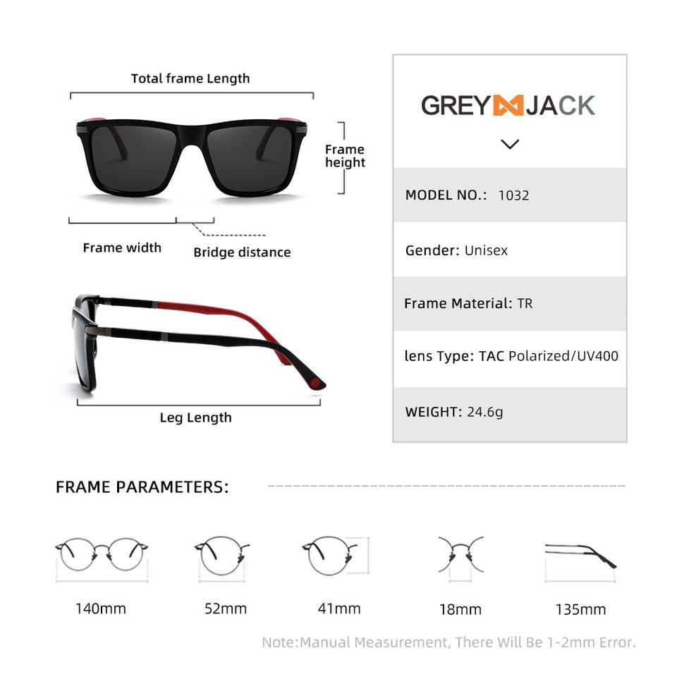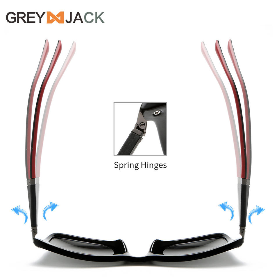 แว่นกันแดดโพลาไรซ์สำหรับผู้ชายเกรย์แจ็ค UV400 ทรงสี่เหลี่ยมเต็มกรอบสไตล์เรโทรเลนส์ TAC บานพับสปริงสำหรับการขับขี่