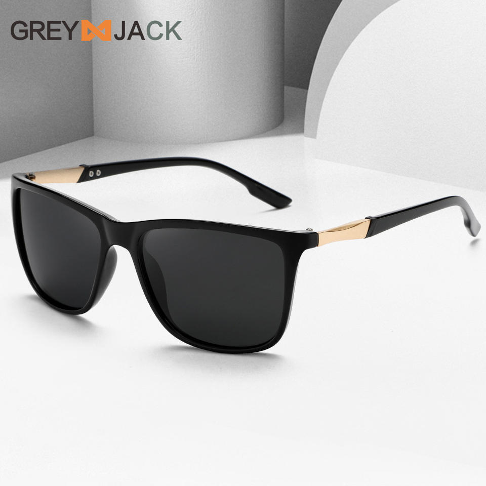 แว่นกันแดดโพลาไรซ์สำหรับผู้ชาย Greyjack UV400 มองเห็นในเวลากลางคืน กรอบ PC สีดำ เลนส์ TAC สำหรับขับรถ เล่นกีฬา ตกปลา