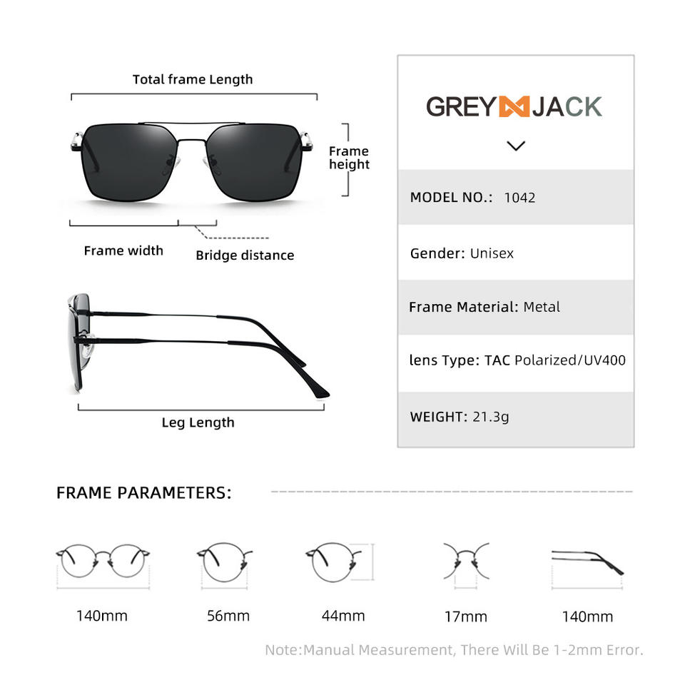 แว่นกันแดดผู้ชาย Greyjack เลนส์ TAC เต็มกรอบ UV400วิสัยทัศน์กลางคืนแว่นตาขับรถโพลาไรซ์กรอบสีดำทอง