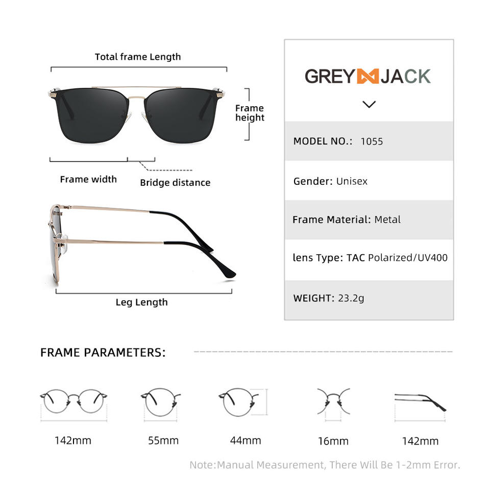 แว่นกันแดดเกรย์แจ็คเมทัลเลนส์โพลาไรซ์ UV400 TAC กรอบสีทอง แว่นกันแดดสำหรับทุกเพศประเภท 3