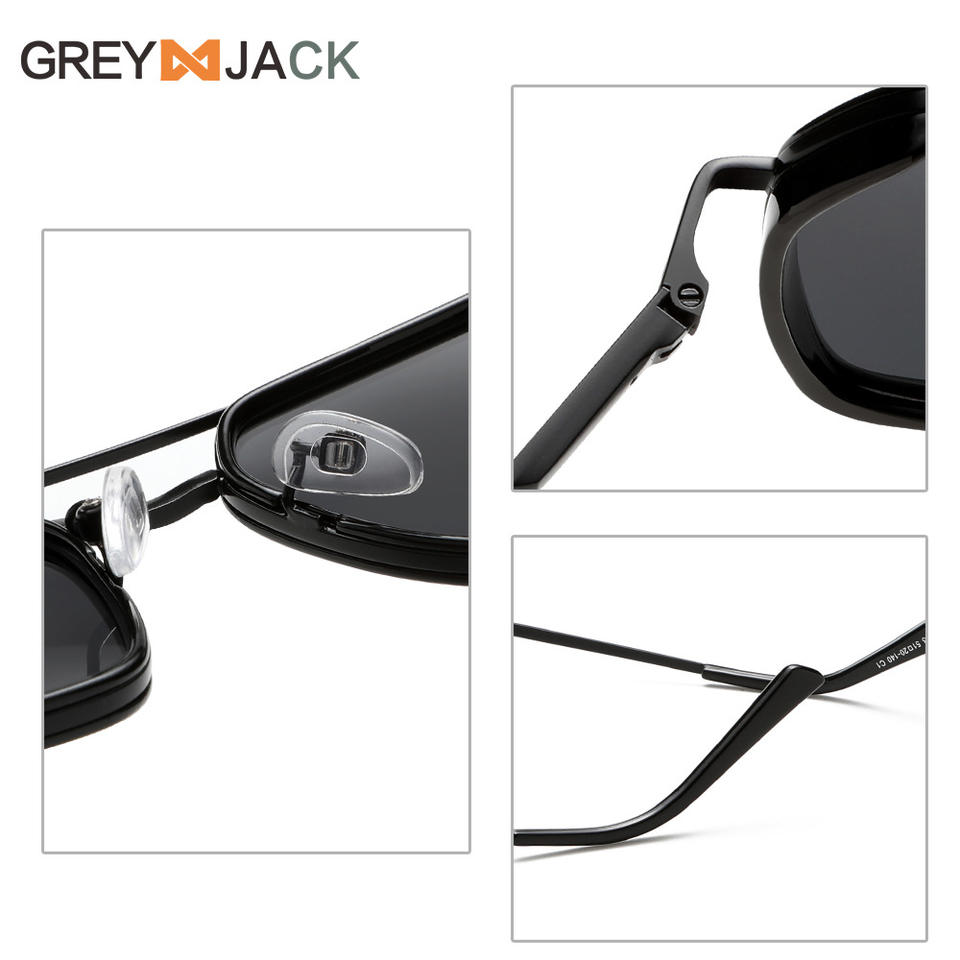 แว่นกันแดดโพลาไรซ์เกรย์แจ็คกรอบโลหะสีดำป้องกันรังสียูวี 400 ดีไซน์ทรงสี่เหลี่ยมสำหรับทุกเพศประเภท 3 แว่นกันแดดเลนส์ TAC