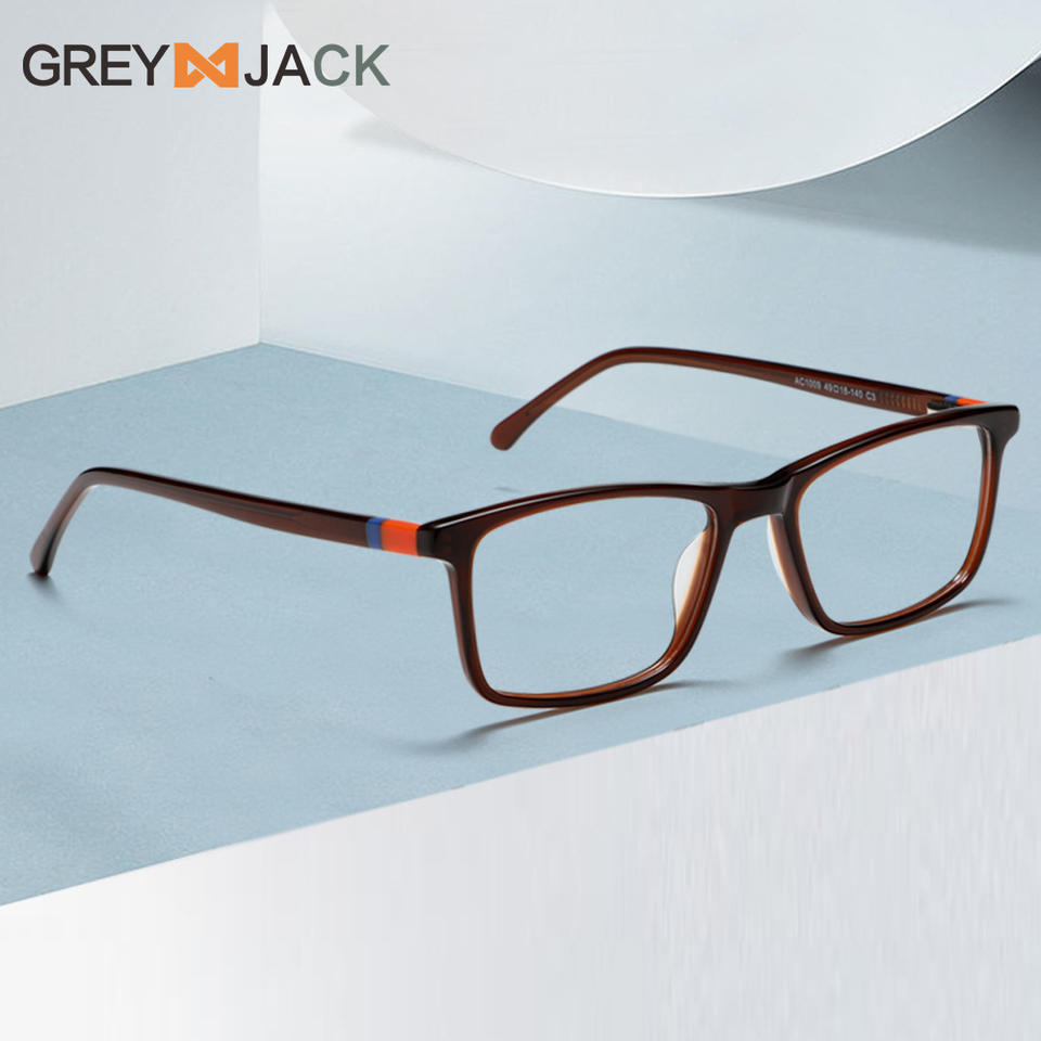 กรอบแว่นตา Greyjack ทรงสี่เหลี่ยม รุ่น Ac1009 แบบเต็มกรอบ กันลื่น สำหรับทุกเพศ วัสดุโลหะแผ่น แว่นสายตา