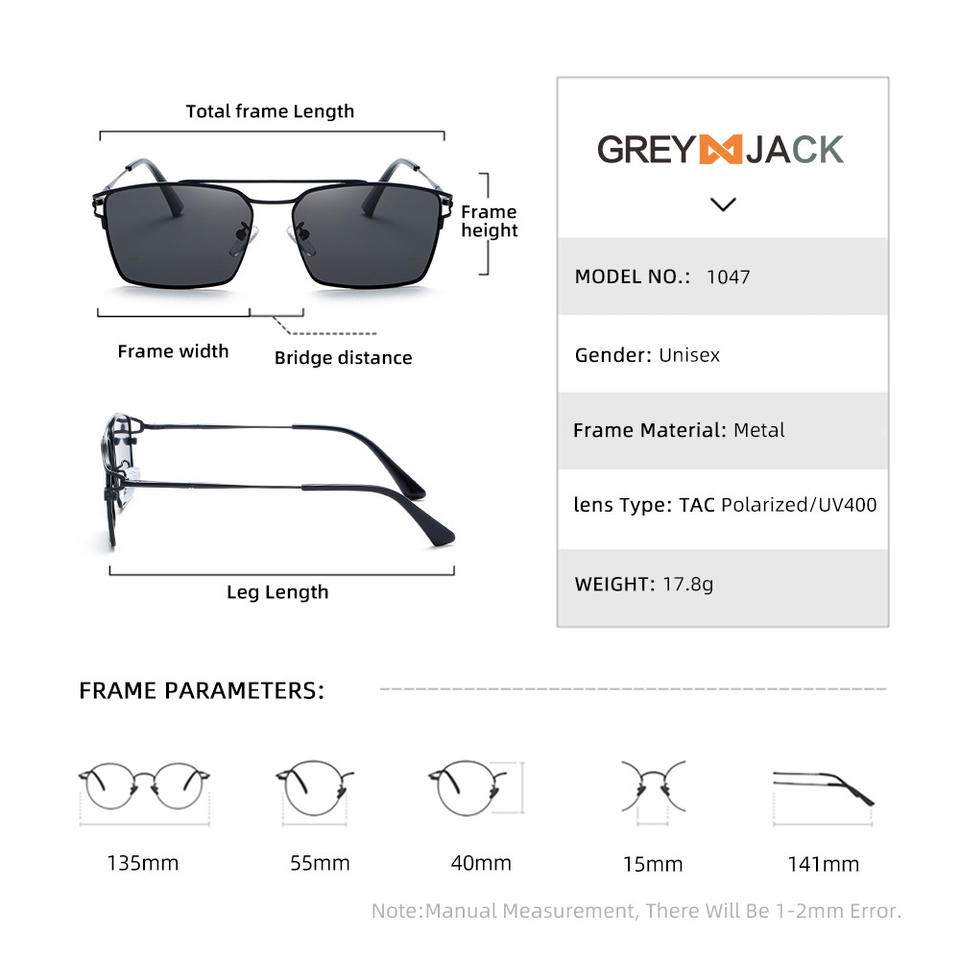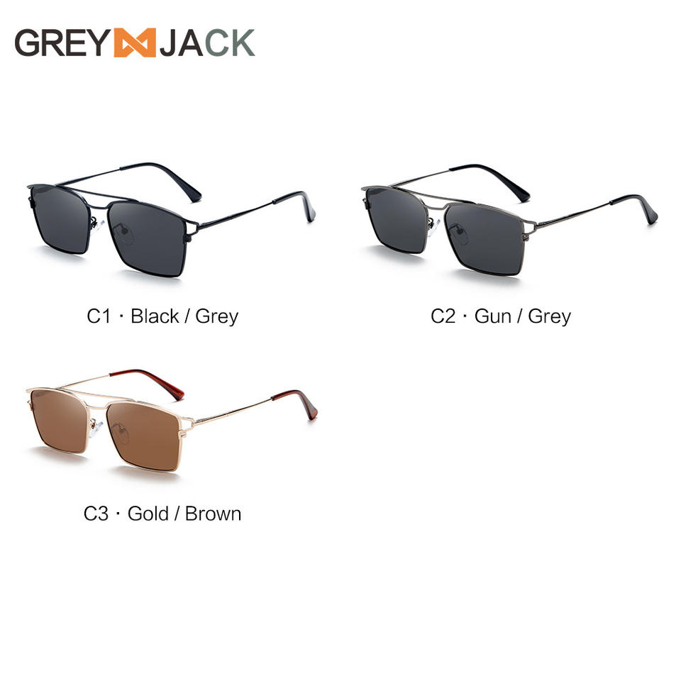 แว่นกันแดดทรงสี่เหลี่ยมเกรย์แจ็ค ยูนิเซ็กส์กรอบโลหะเต็มเลนส์ TAC ป้องกันรังสียูวี 400