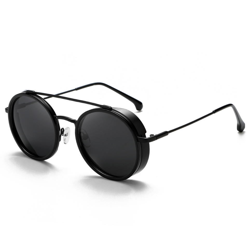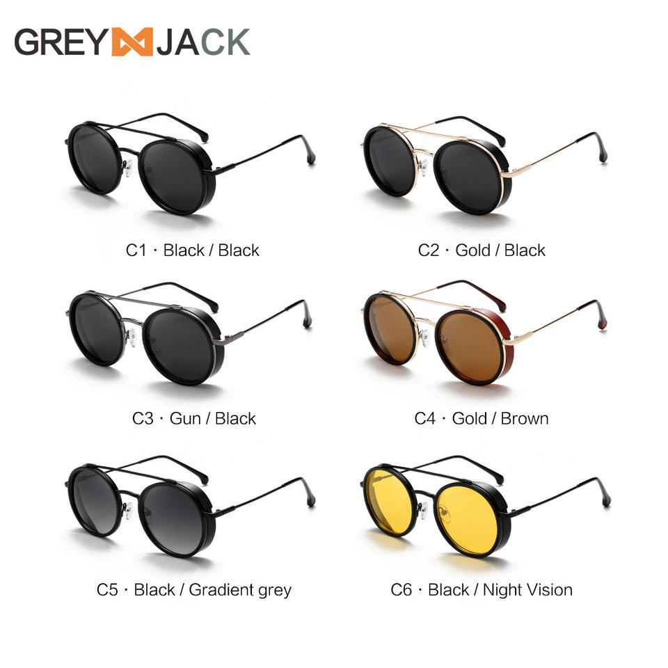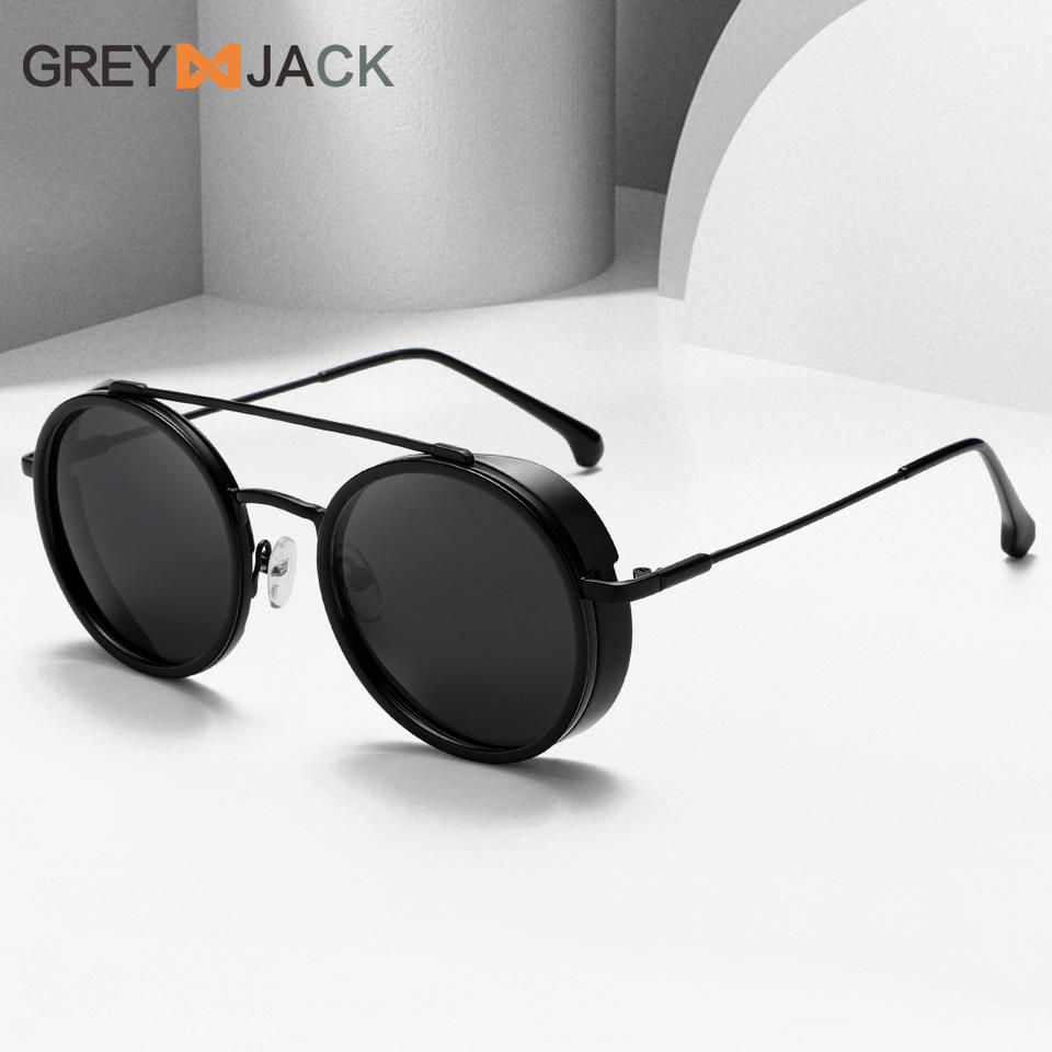 แว่นกันแดดทรงกลมเกรย์แจ็คกรอบโลหะสีดำ UV400 โพลาไรซ์ แว่นกันแดดสำหรับทุกเพศประเภท 3 เลนส์ TAC