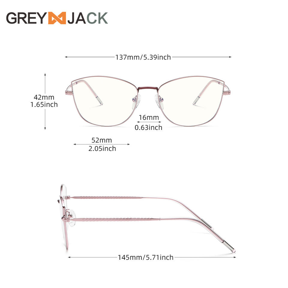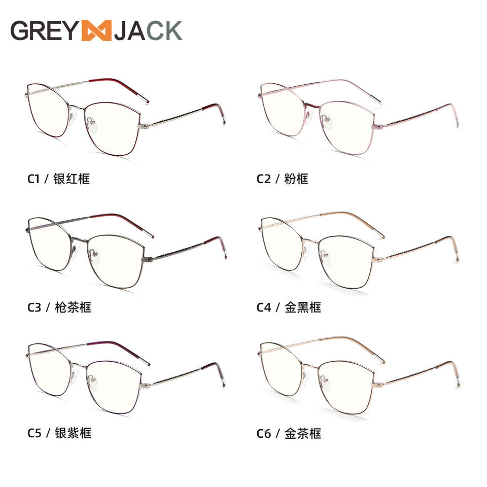 เกรย์แจ็คแว่นตาผู้หญิงทรงแคทอายกรอบเลนส์เอซีป้องกันแสงสีฟ้าขนาดกลางกรอบสแตนเลส
