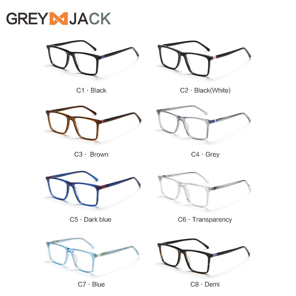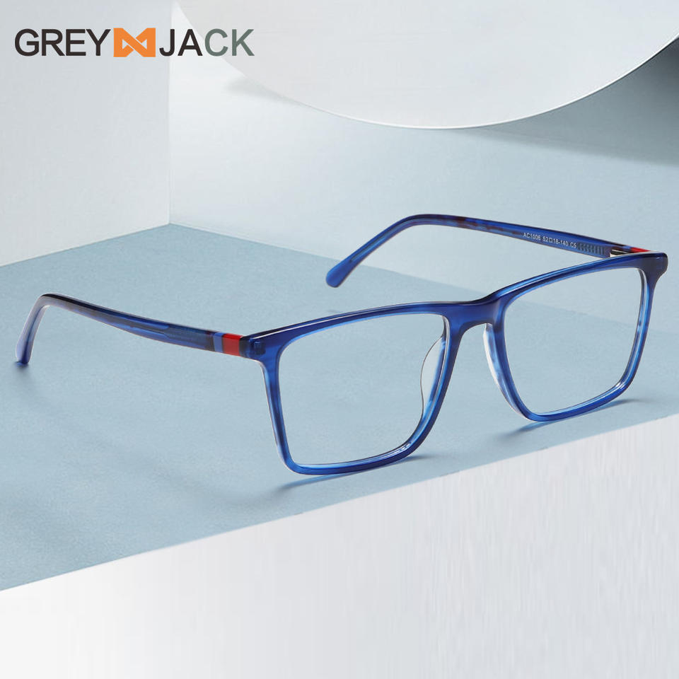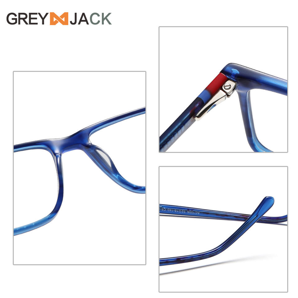 กรอบแว่นตาทรงสี่เหลี่ยมสำหรับผู้หญิงเกรย์แจ็ค AC1006 กรอบเต็มป้องกันแสงสีฟ้ากรอบโลหะแผ่น