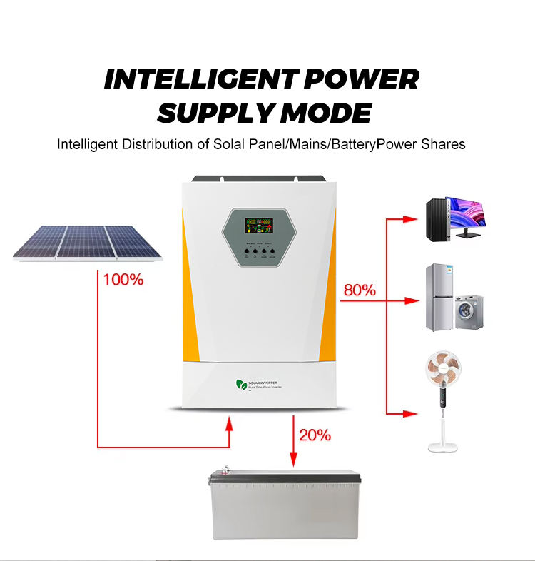 อินเวอร์เตอร์พลังงานแสงอาทิตย์แบบกริดออฟกริด คลื่นไซน์บริสุทธิ์ 6.2 กิโลวัตต์ ประสิทธิภาพ 98% ระบบไฮบริด MPPT สำหรับบ้าน