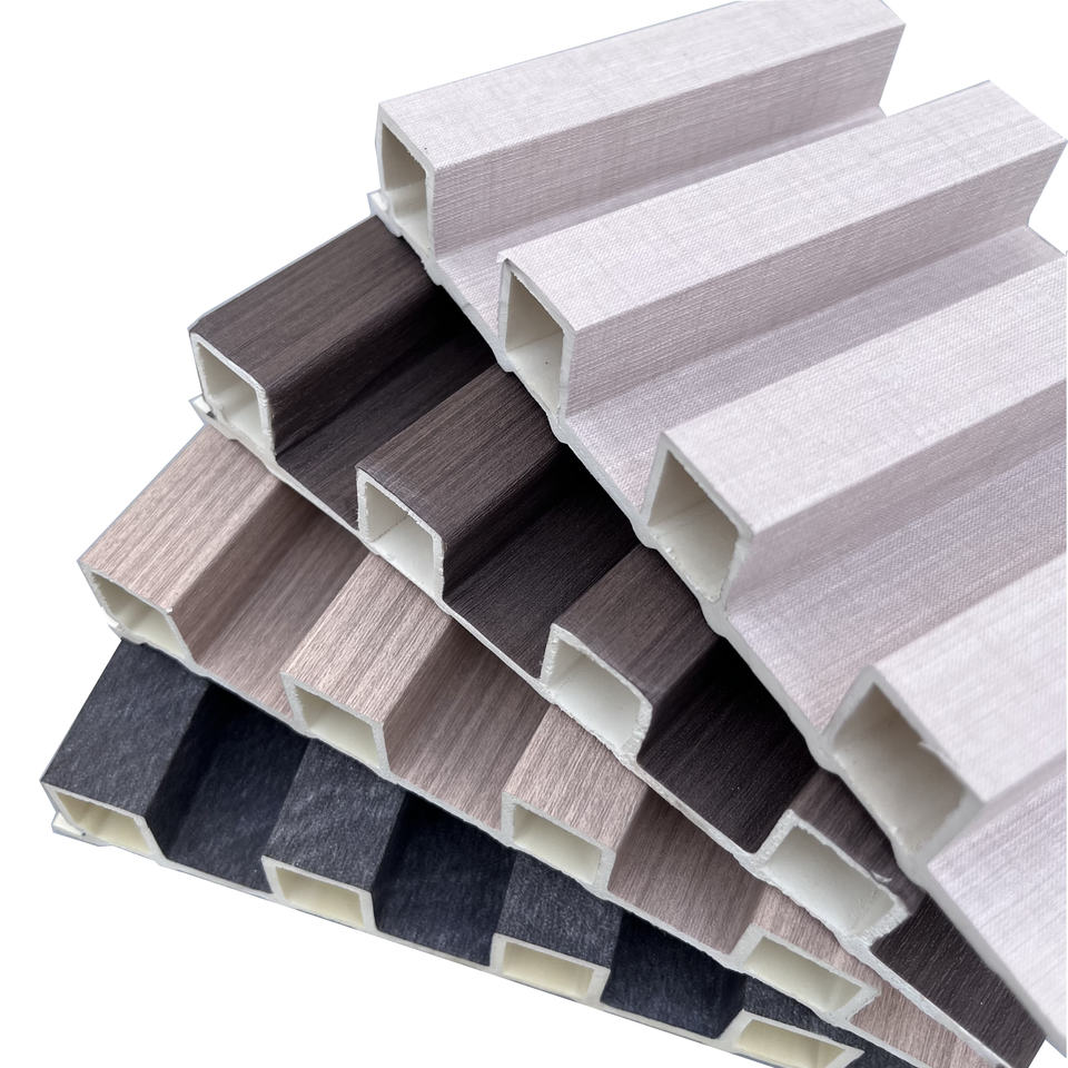 แผงติดผนัง WPC ร่องภายในอาคารแผ่นไม้ระแนงไม้พลาสติกคอมโพสิตทีวีตกแต่งพื้นหลังภายนอก