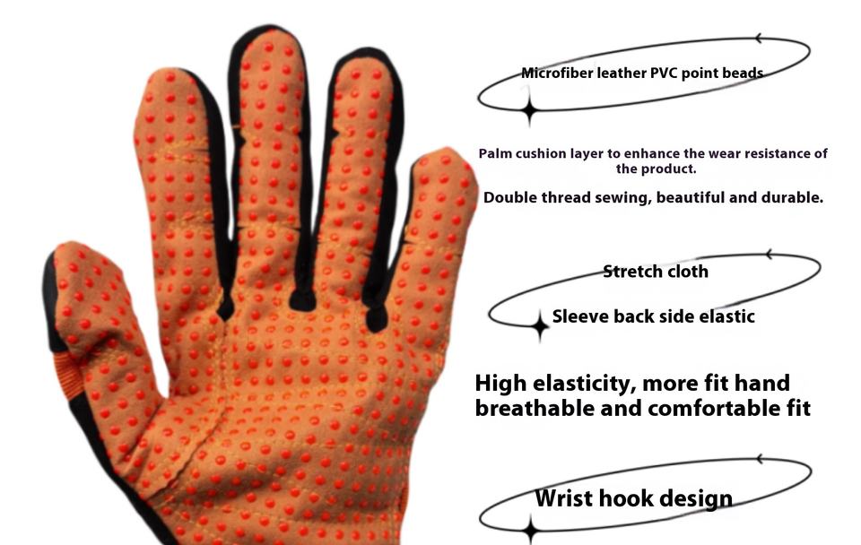 ถุงมือหนังวัวเคลือบไนไตรล์ ป้องกันแรงกระแทก ลดแรงสั่นสะเทือน สายรัดข้อมือปรับได้ 11 ออนซ์ ถุงมือสแปนเด็กซ์สำหรับงานเครื่องจักร