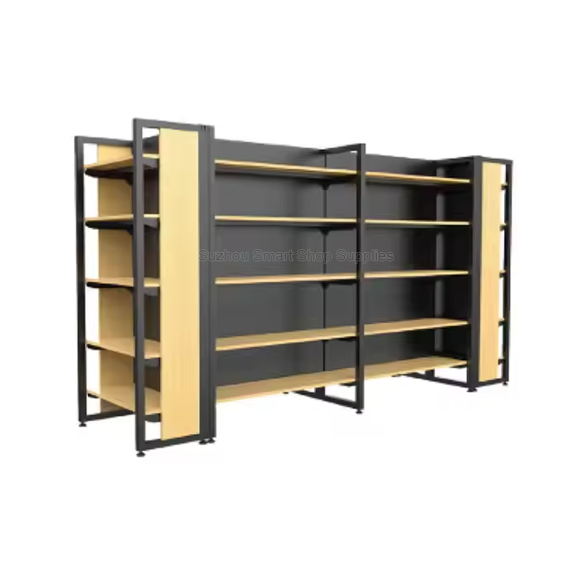 ชั้นวางสินค้าในร้านขายของชำ ชั้นวางของในตลาดแบบไม้ ชั้นวางสินค้าในซูเปอร์มาร์เก็ต ตู้โชว์เครื่องประดับเหล็ก