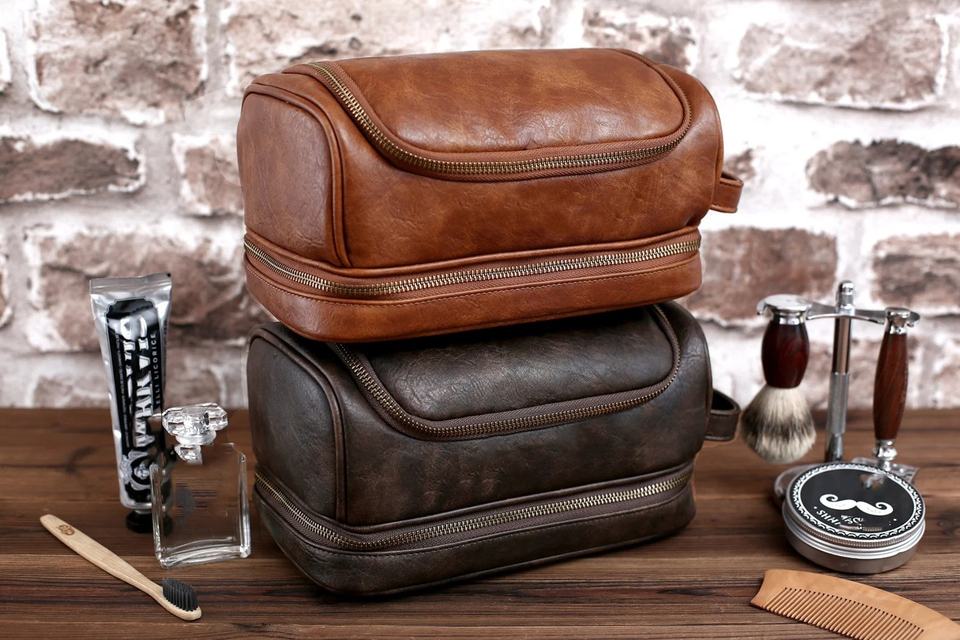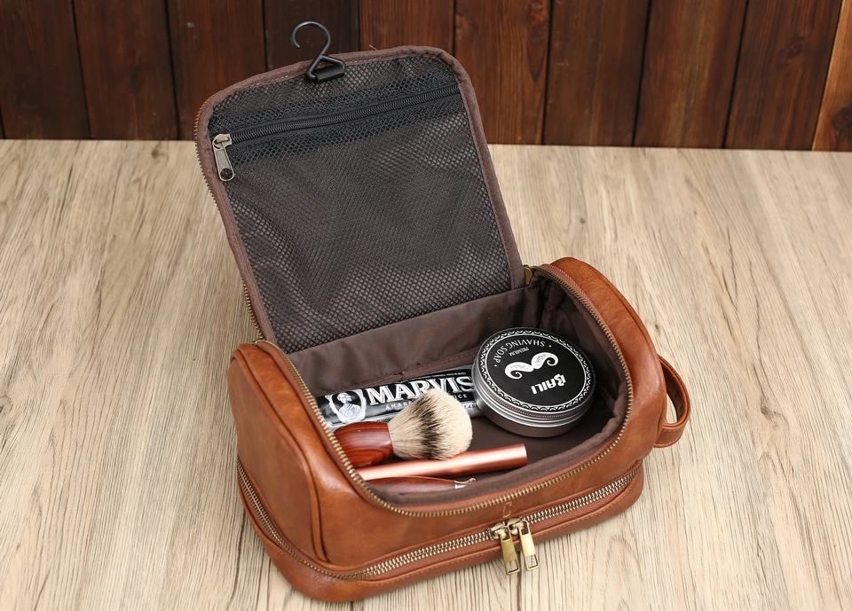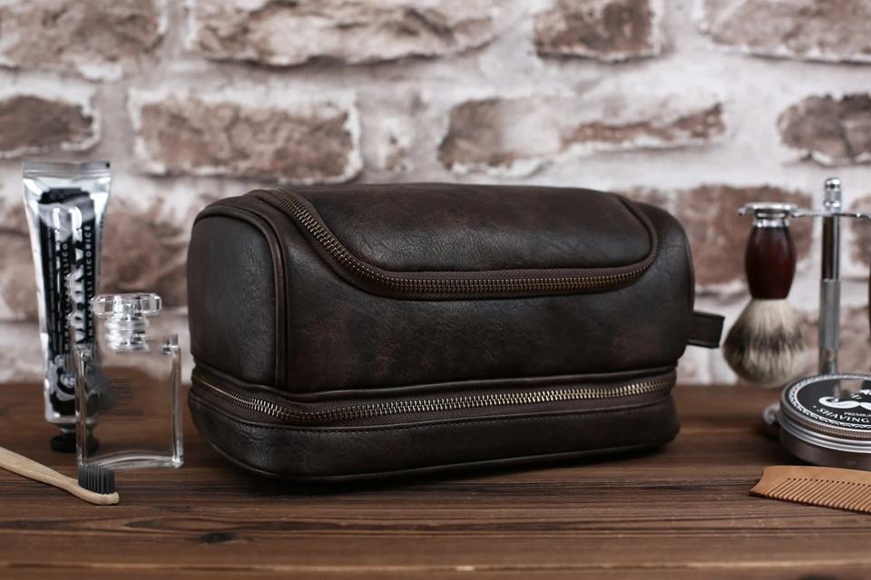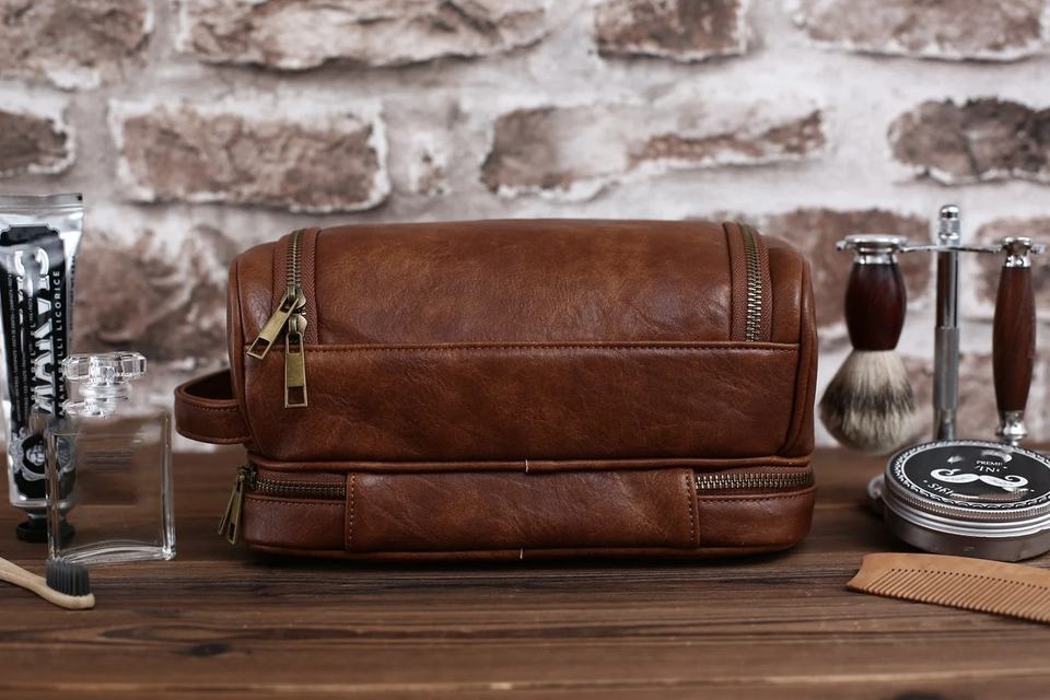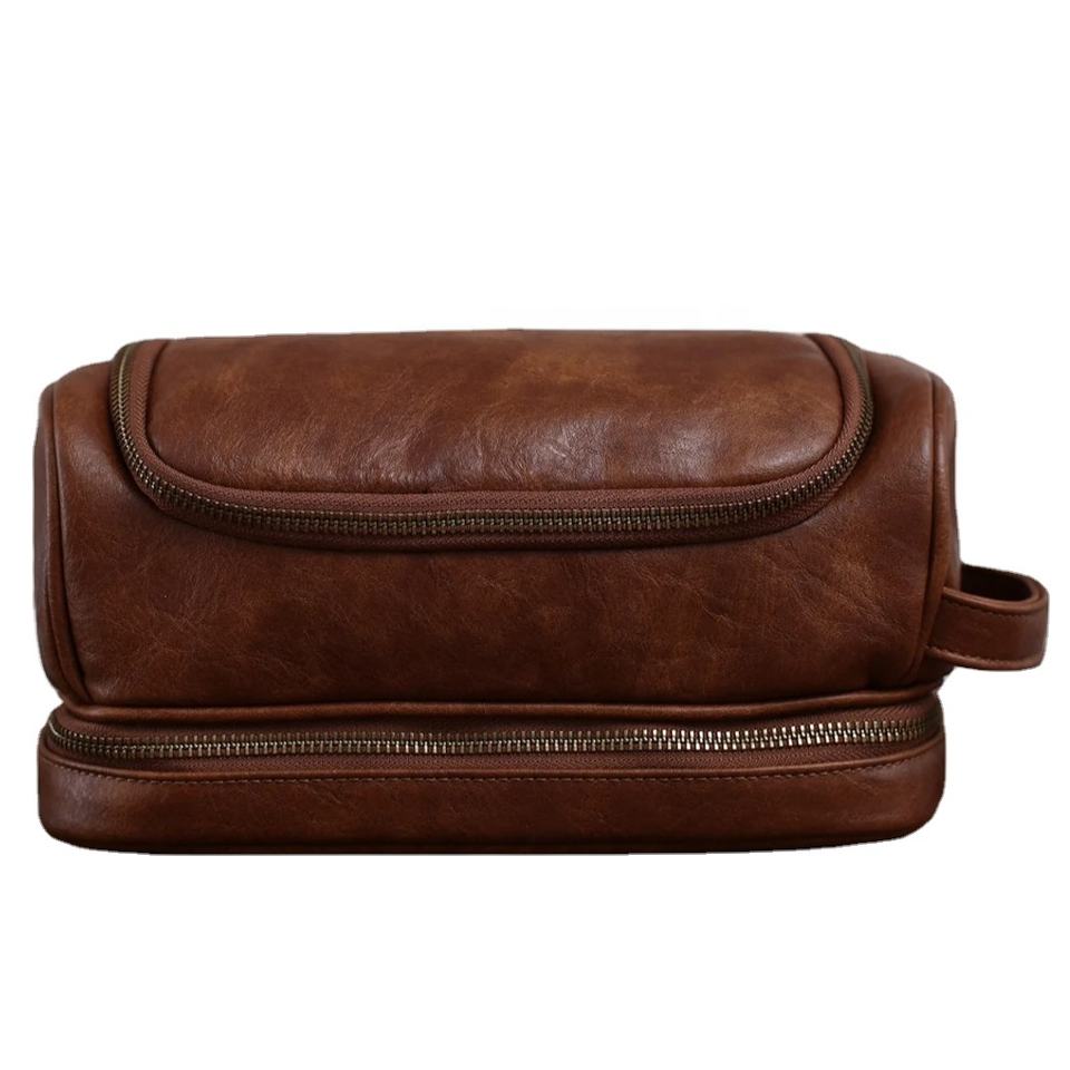 TYG-0009B Vintage Style Waterproof Genuine Leather for Toiletry Bag Dopp Kit Zipper Closure Men's Shaving Gift