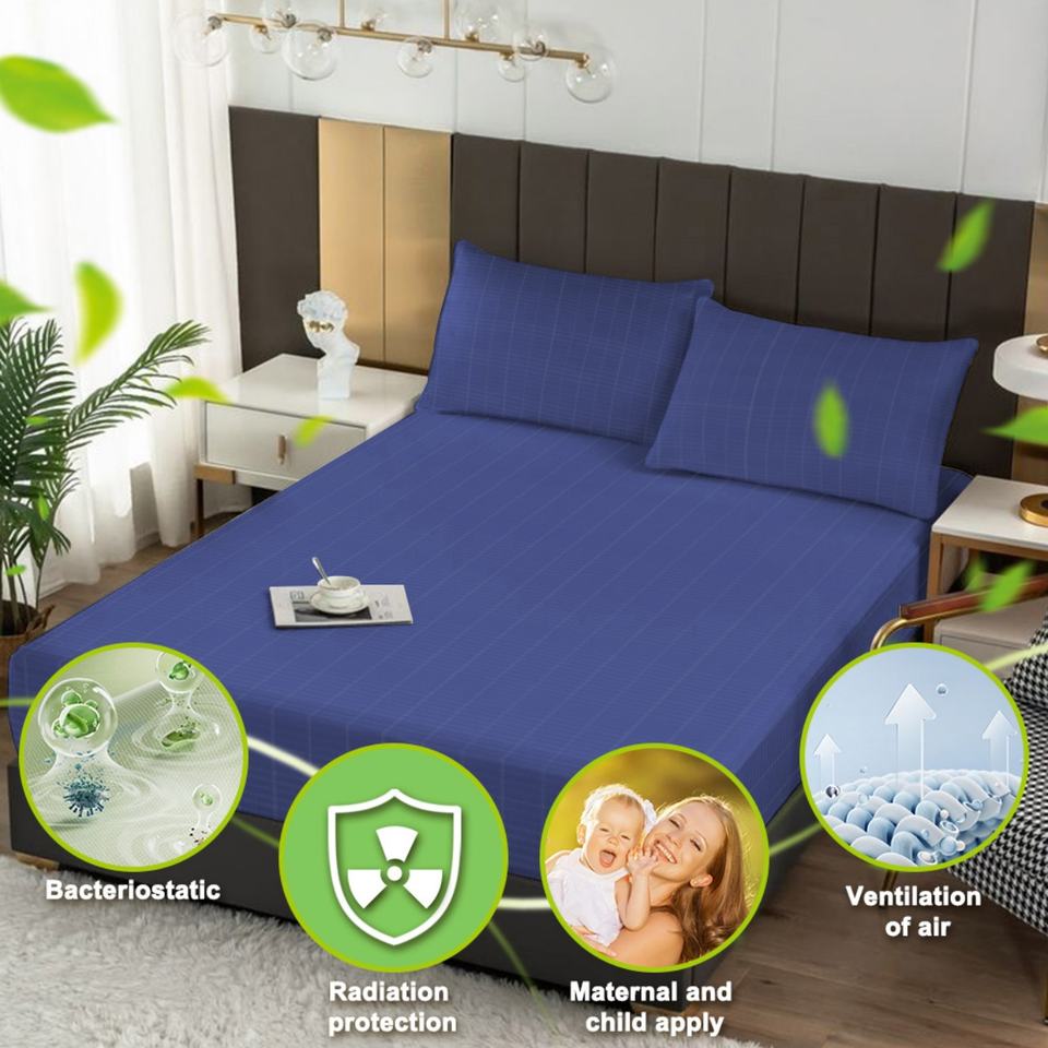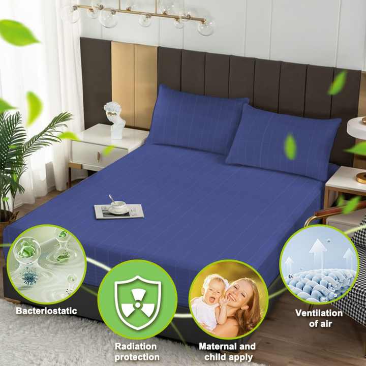 ผ้าปูที่นอนป้องกันรังสี ผสมเงิน 5% และผ้าฝ้ายออร์แกนิค 95% สำหรับการต่อสายดิน ลายพิมพ์สวยงาม ใช้ได้ทั้งที่บ้านและโรงแรม