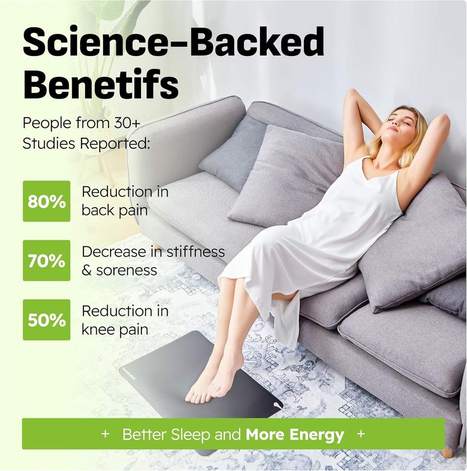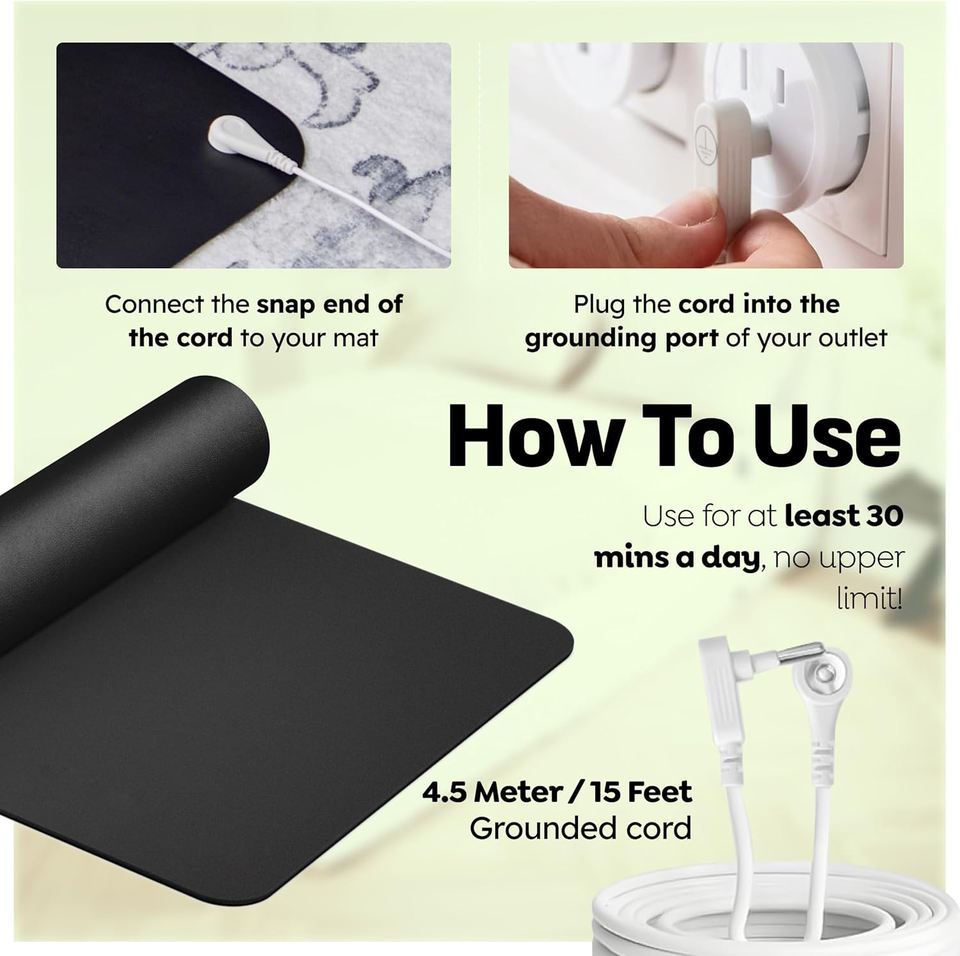 GroundingWell - แผ่นรองพื้นสำหรับเท้าพร้อมสายไฟยาว 15 ฟุต, ตัวต้านทาน 50K โอห์ม, ชั้นคาร์บอน - แผ่นรองพื้นสำหรับทำงาน, นอนหลับ, เพื่อความสบาย
