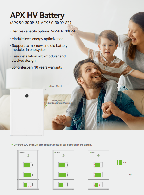 แบตเตอรี่ลิเธียม Growatt LiFePo4 แรงดันสูง HV 330-450V 5KWH รุ่น APX 5.0P-S1/S2/S0 มาตรฐาน IP66 สำหรับใช้งานกลางแจ้ง