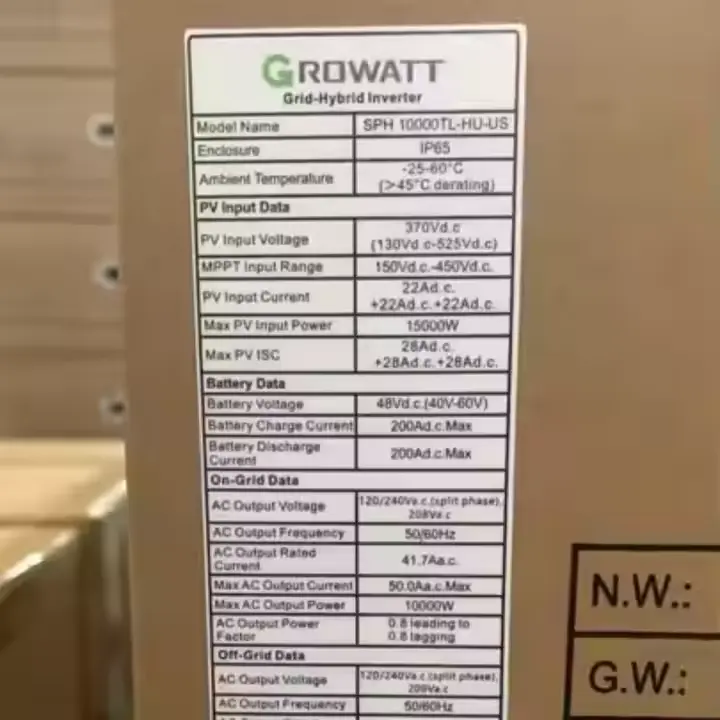 Growatt อินเวอร์เตอร์10000tl-hu-us 8KW 10KW SPH ไฮบริดแบบแยกเฟส120V/240V สำหรับ PV