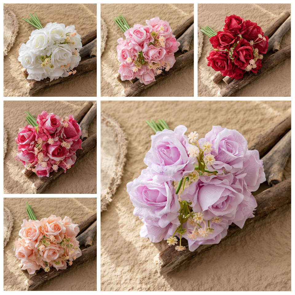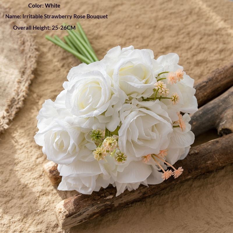 ช่อดอกกุหลาบสตรอว์เบอร์รีสีแดงเข้ม ดอกไม้ประดิษฐ์ ตกแต่งงานแต่งงาน ช่อดอกไม้ติดผนัง ดอกไม้ปลอม ของตกแต่งบ้าน