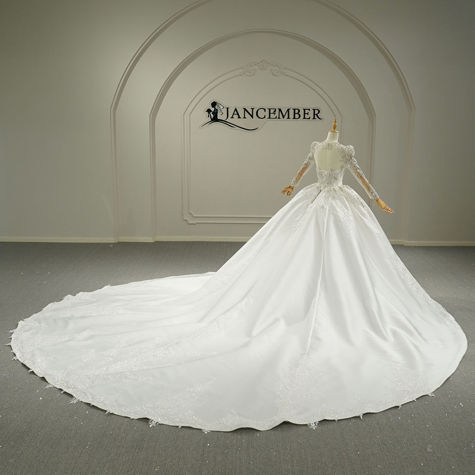 ชุดแต่งงานเจ้าหญิงสุดหรูหราทันสมัย รุ่น Gt26006 ตกแต่งด้วยลูกไม้ คอรูปหัวใจ ชายกระโปรงยาวลากพื้น ประดับคริสตัลและมุกทำมืออย่างประณีต
