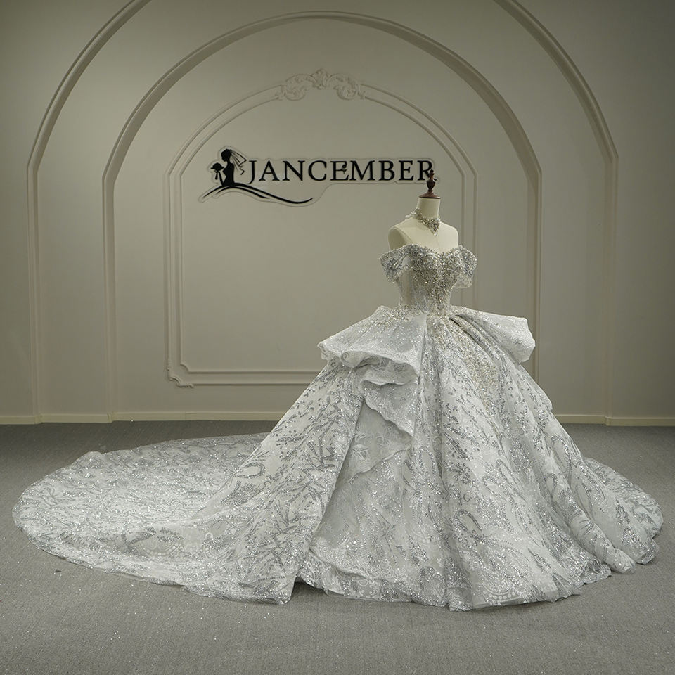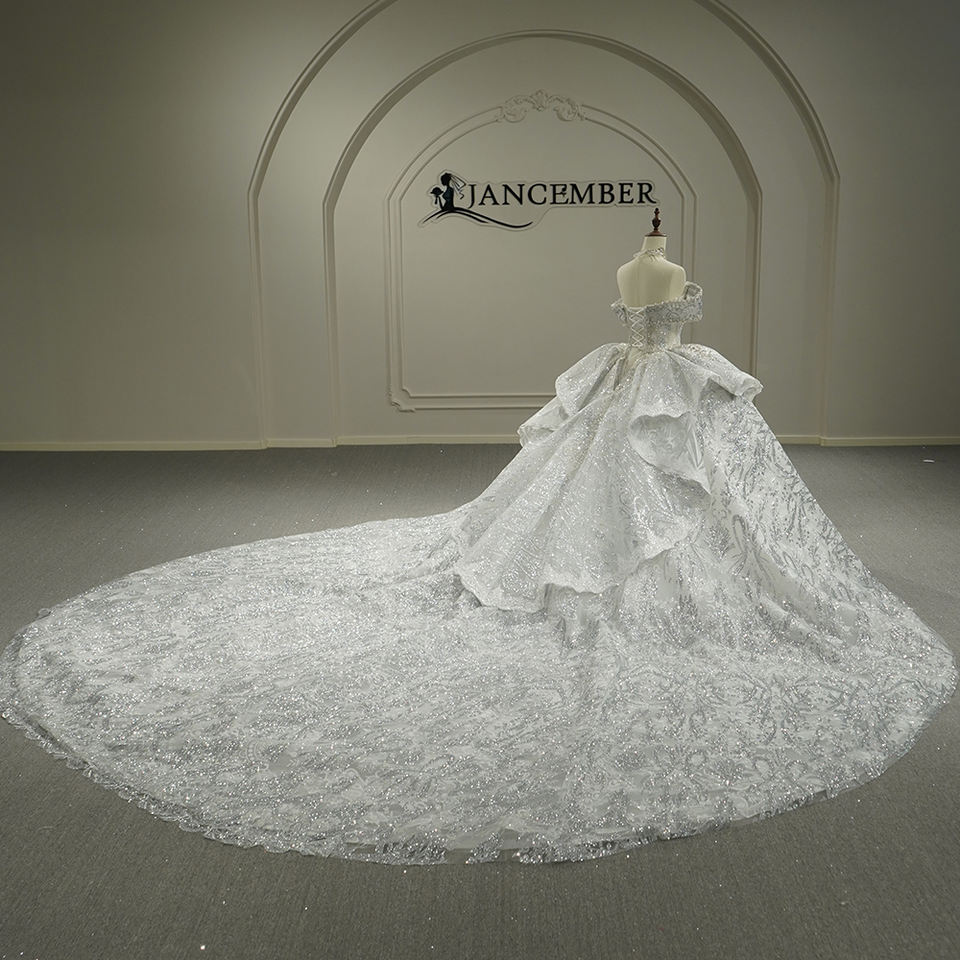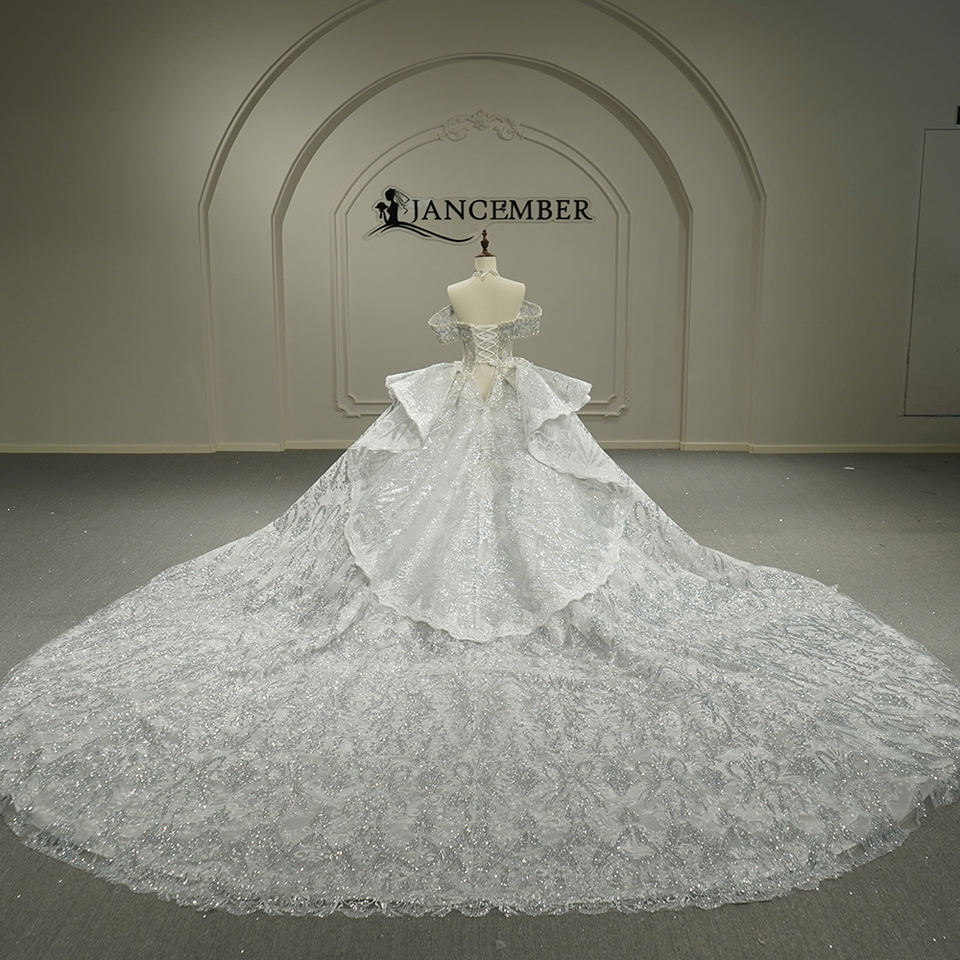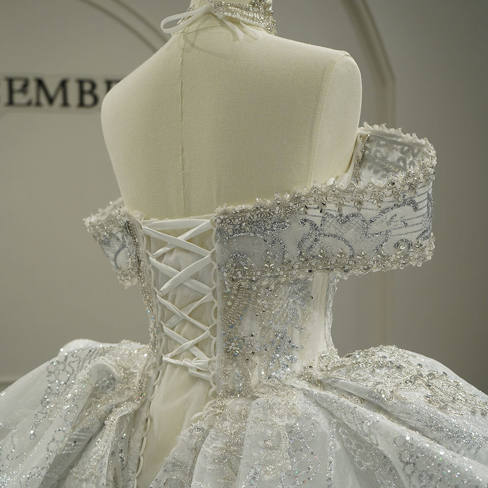 ชุดแต่งงานทรงบอลกาวน์ทันสมัย GT26011 ประดับด้วยลูกไม้ ป้องกันไฟฟ้าสถิตย์ ชายกระโปรงยาวลากพื้น ดีไซน์เรียบหรู