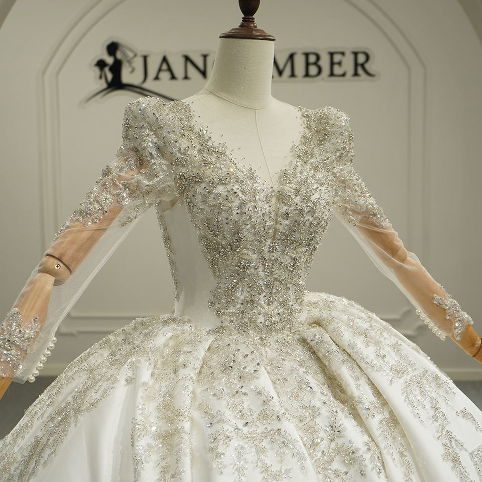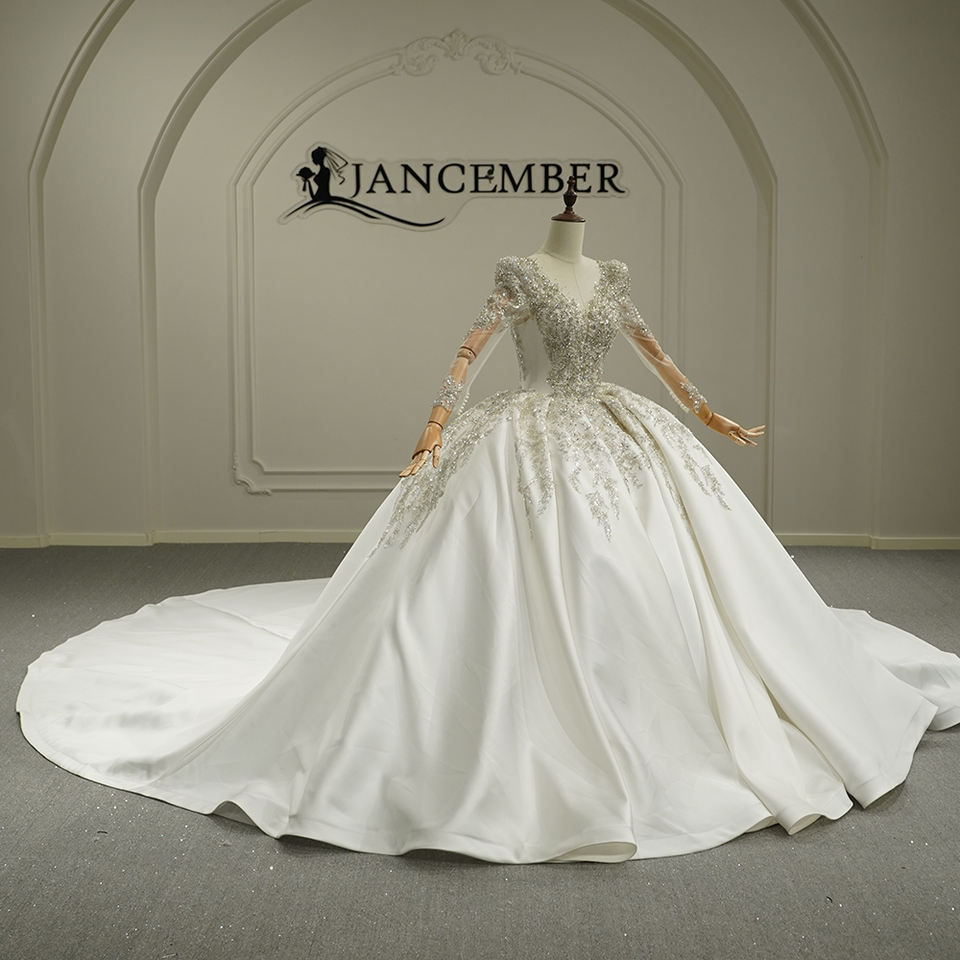 ชุดแต่งงานเจ้าสาวทรงเจ้าหญิง รุ่น Gt26022 กระโปรงผ้าซาติน คอวี พร้อมชายกระโปรงยาว Jancember
