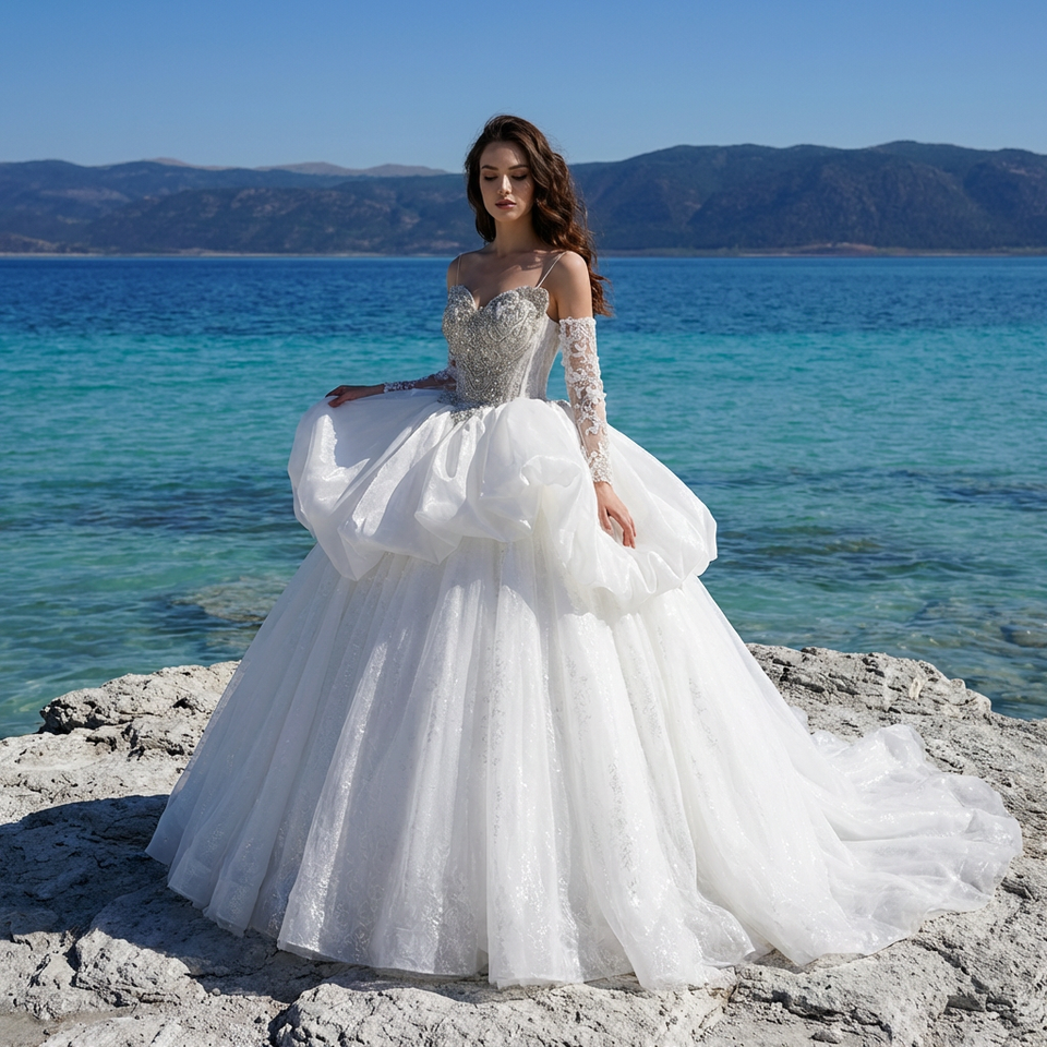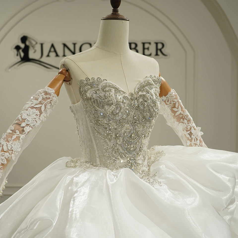 ชุดแต่งงานหรูหรา Gt26034 สำหรับเจ้าสาว ดีไซน์ปักลายหนัก แต่งลูกไม้ร้อยเชือกด้านหลัง พร้อมชายกระโปรงยาว Jancember