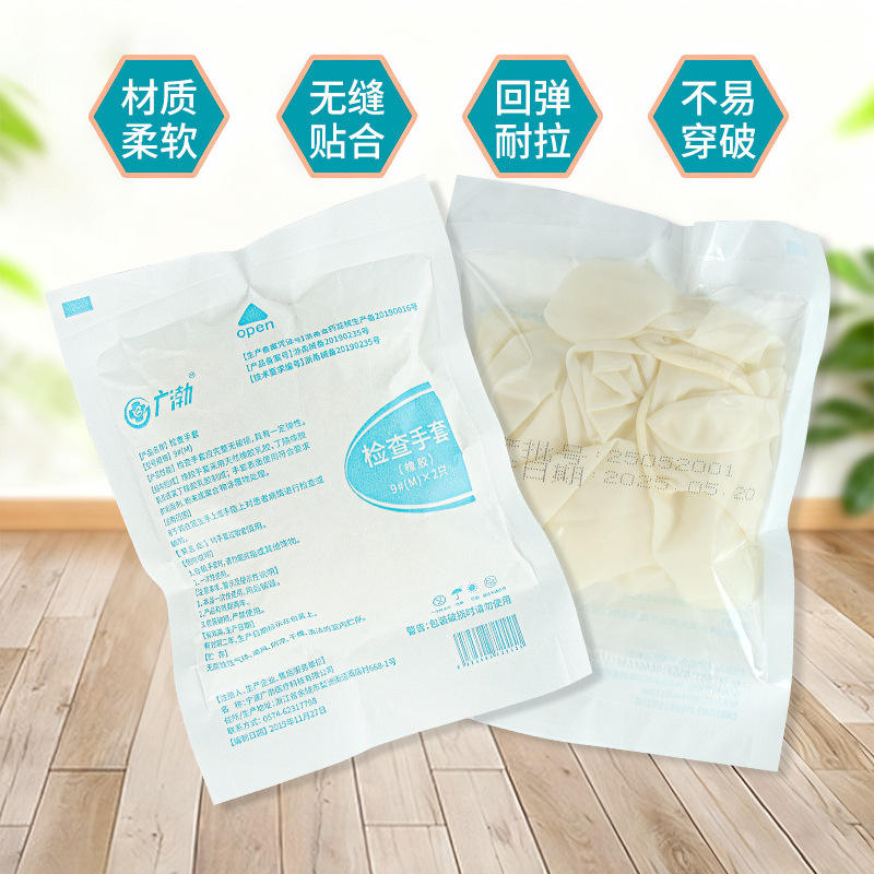 ถุงมือยางแบบใช้แล้วทิ้ง ยี่ห้อ Guangbo ยืดหยุ่นสูง ทนทาน ขนาด M บรรจุแยกชิ้น สำหรับร้านเสริมสวย
