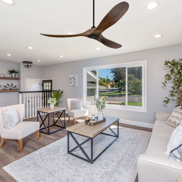 มณฑลกวางตุ้งการออกแบบใหม่อินเวอร์เตอร์56วินาทีโวลต์เมตร E C ฟรียืนพัดลมเพดานที่มี3ใบมีดสำหรับตลาดอเมริกาเหนือ